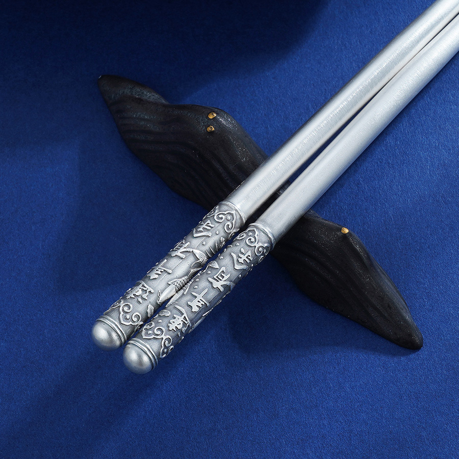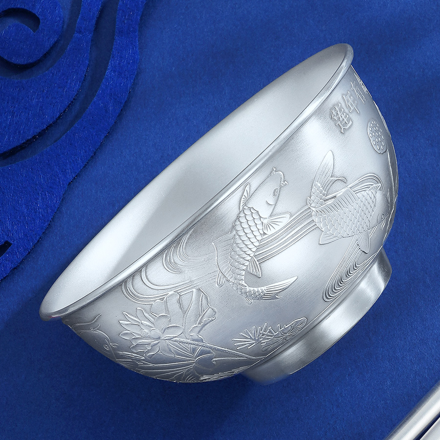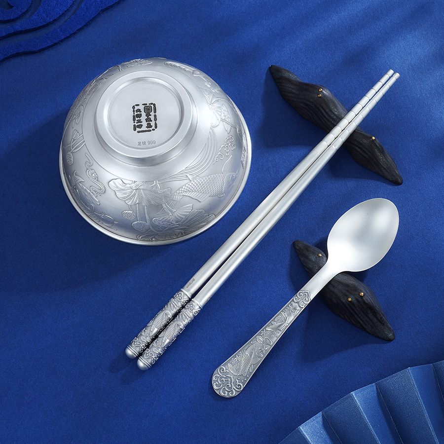 子佩集S999银【莲连有余】碗筷勺摆件套装【BX0460596-4】2108