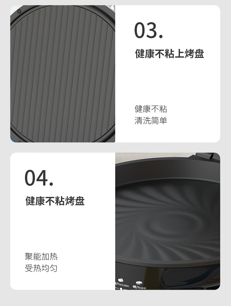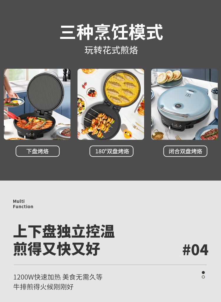 利仁(Liven)电饼铛家用双面加热烙饼锅加深加大烤盘烤肉锅煎饼机家庭用电饼档煎烤机早餐机电煎锅 【LPBC-3105】火力可调加深烤盘