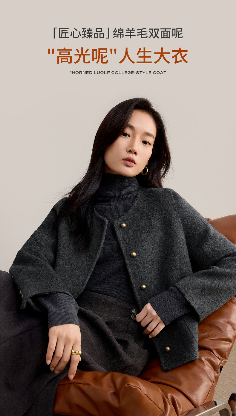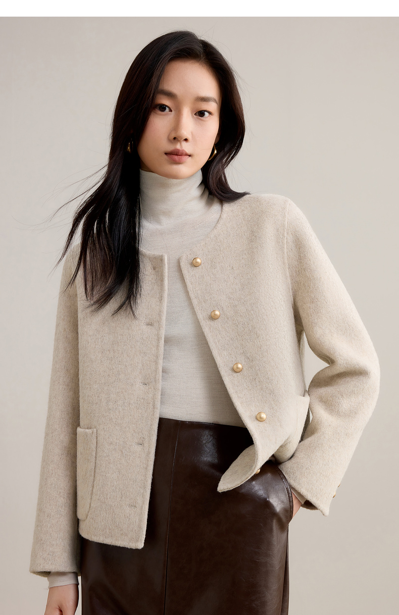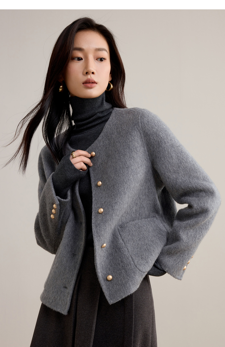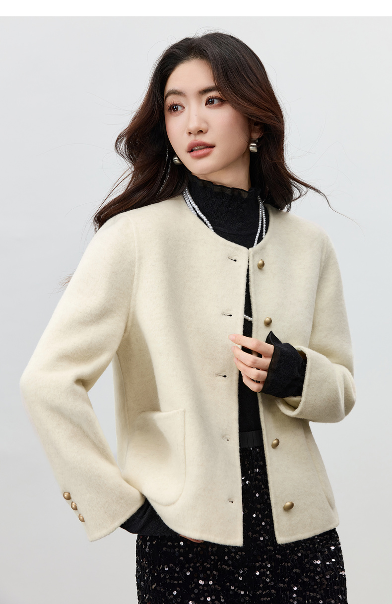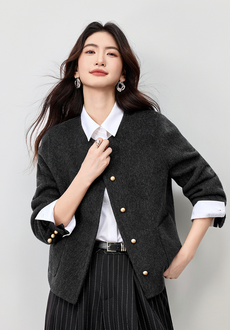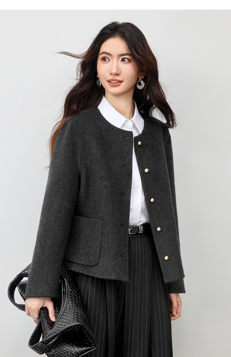【内购】【7色可选】英伦风优雅通勤蘑菇扣短款厚保暖绵羊毛双面呢外套-W54OG3690X