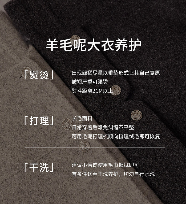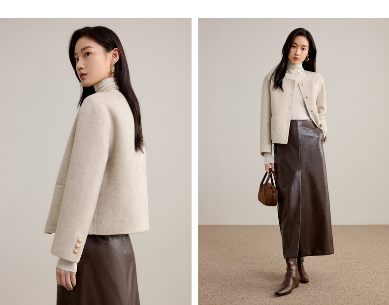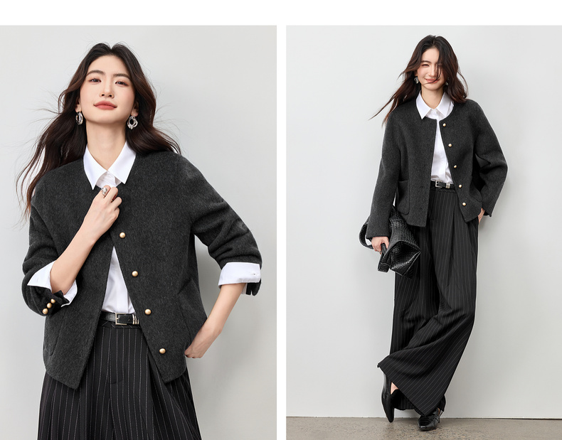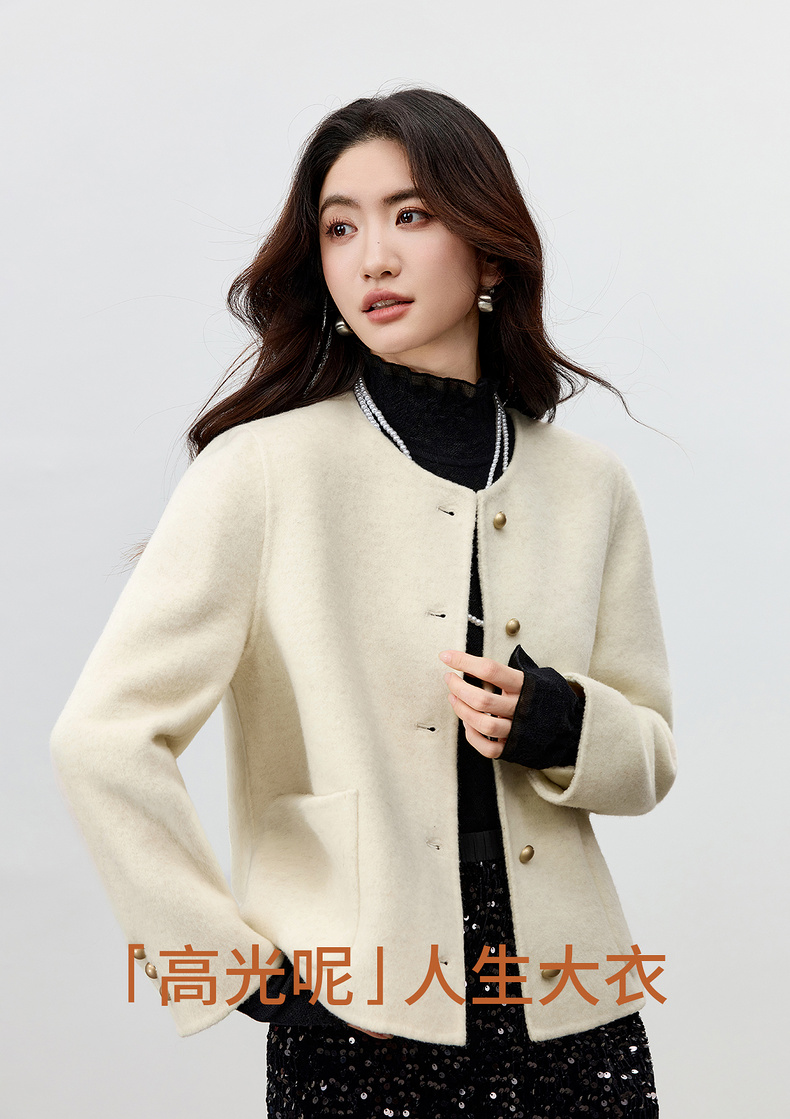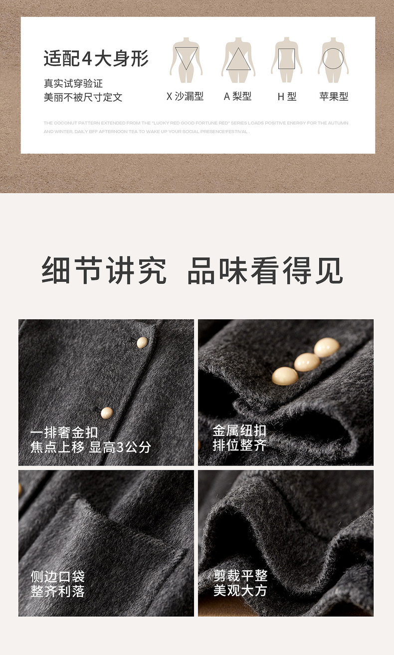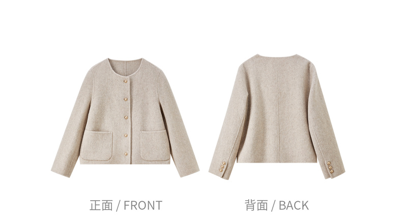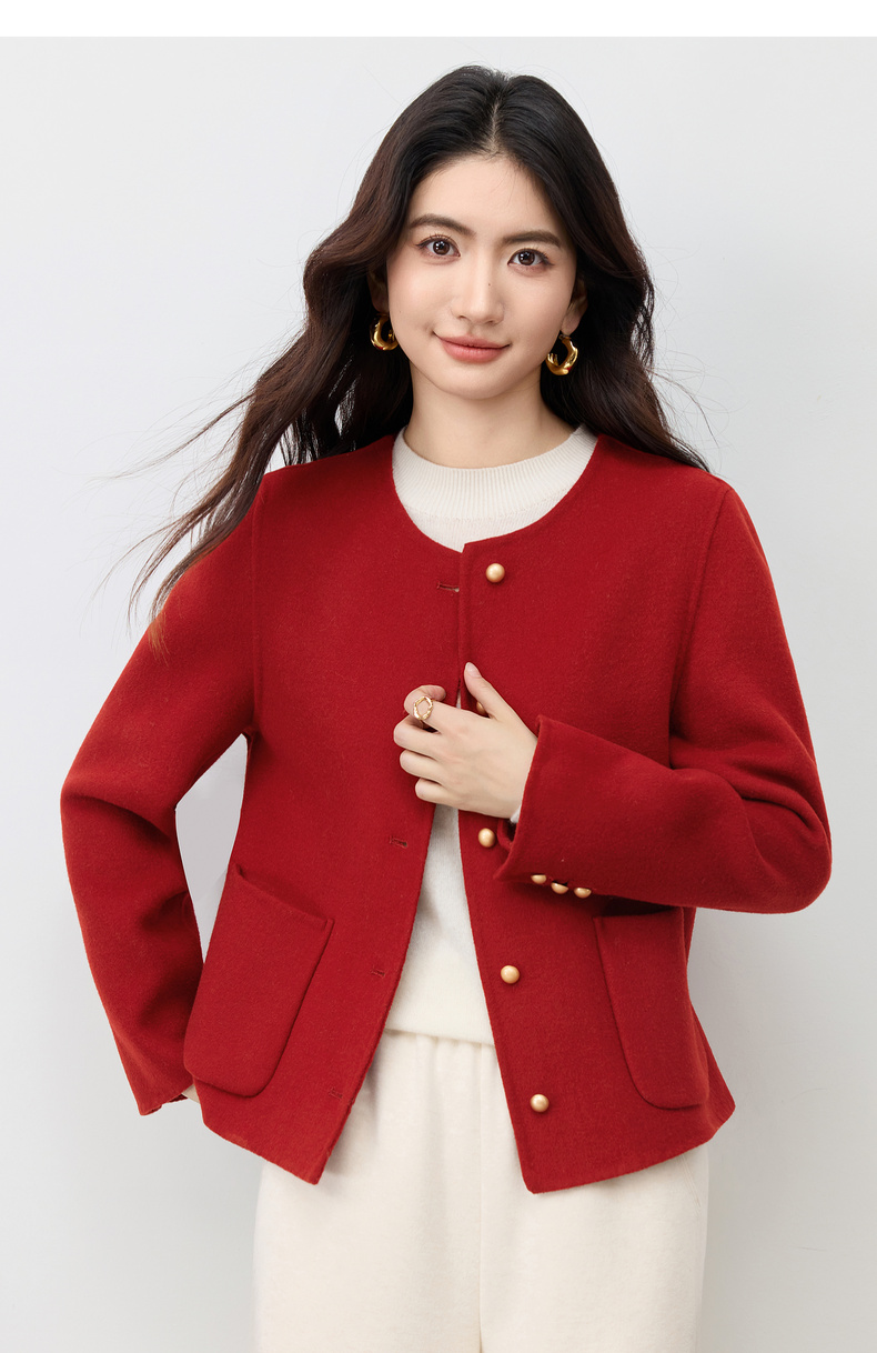 【内购】【7色可选】英伦风优雅通勤蘑菇扣短款厚保暖绵羊毛双面呢外套-W54OG3690X