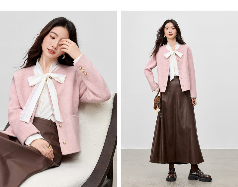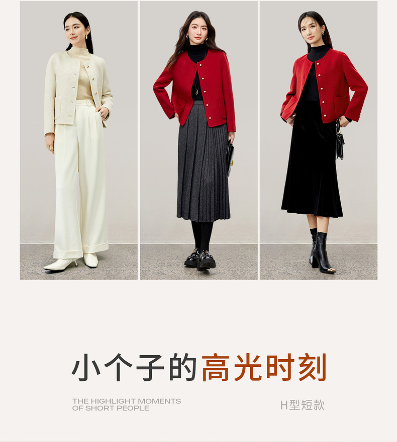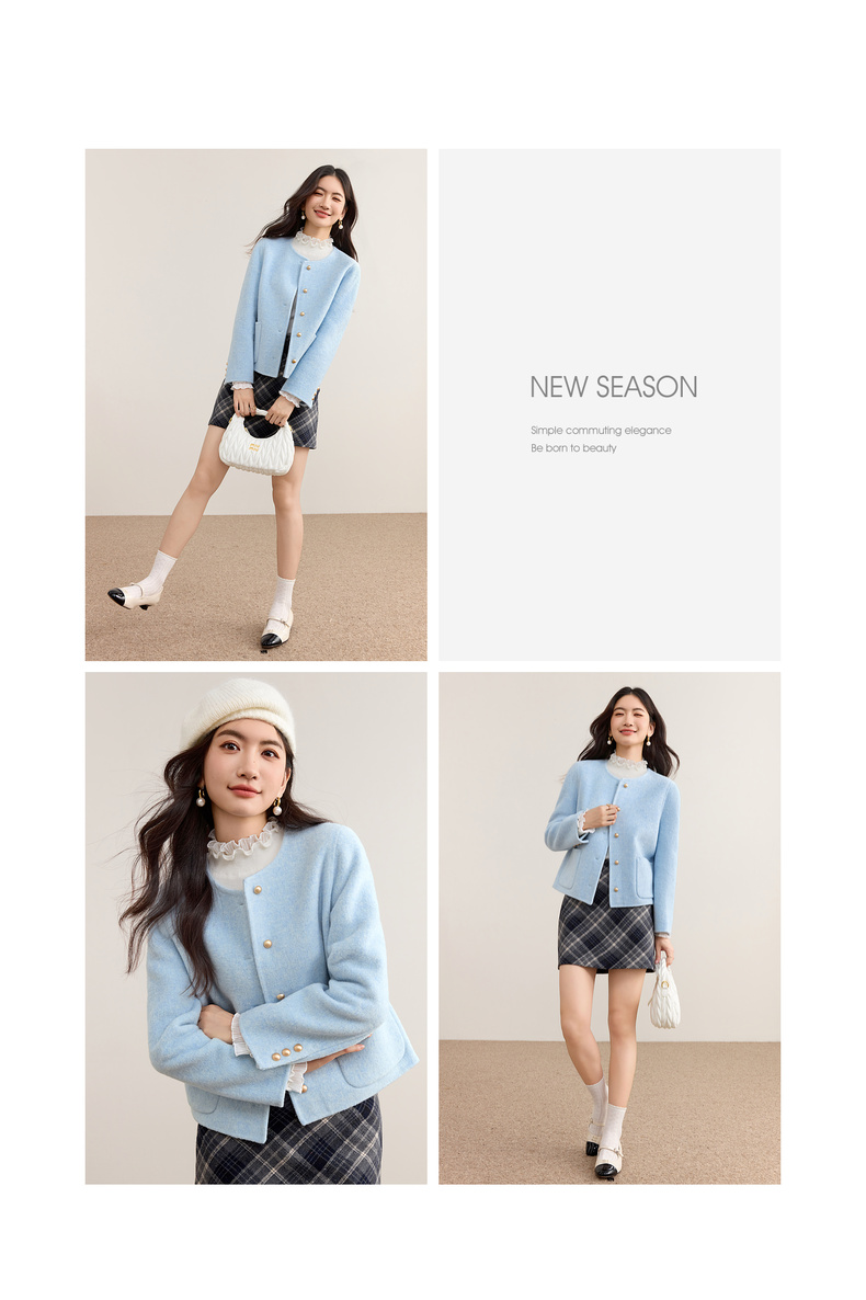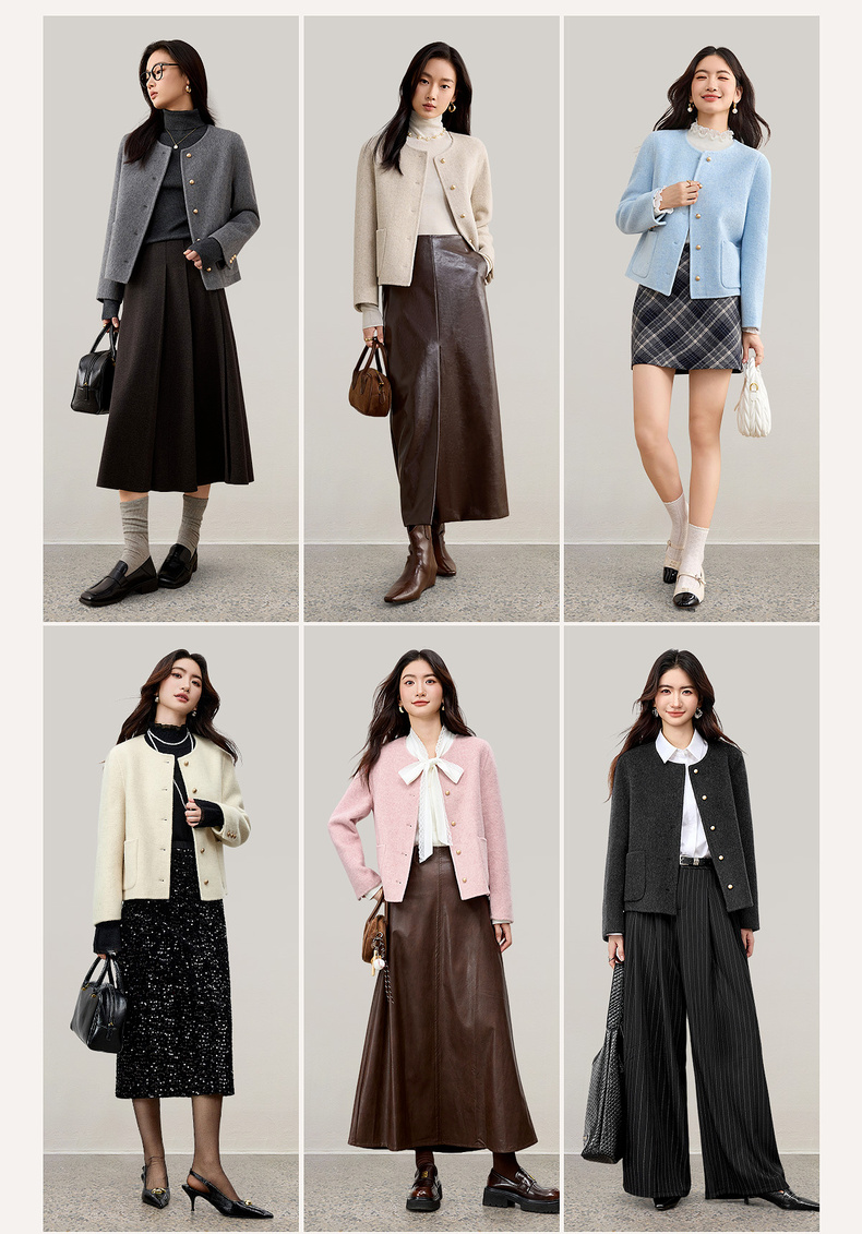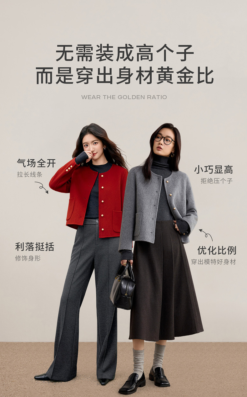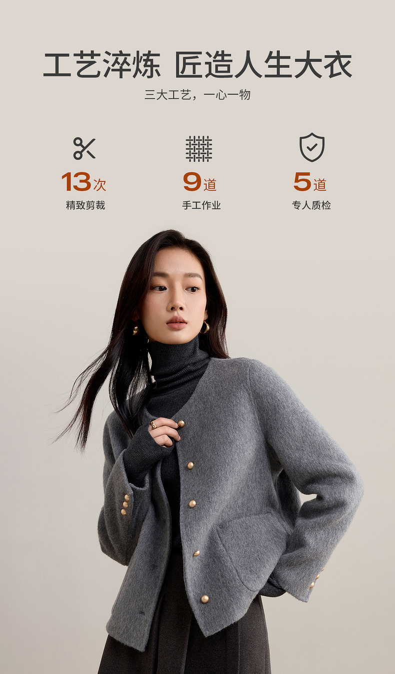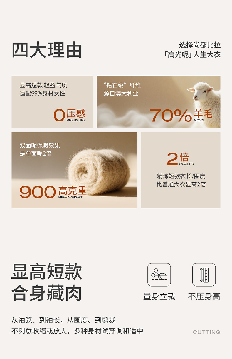 【内购】【7色可选】英伦风优雅通勤蘑菇扣短款厚保暖绵羊毛双面呢外套-W54OG3690X