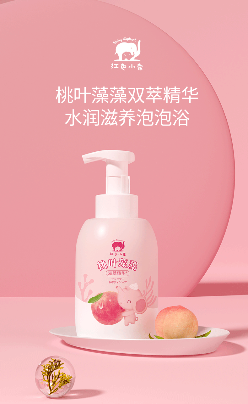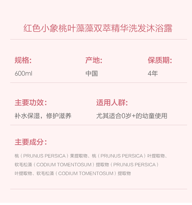 红色小象桃叶藻藻双萃精华洗发沐浴露600ml-6081新老包装随机发 效期26.9-10月后