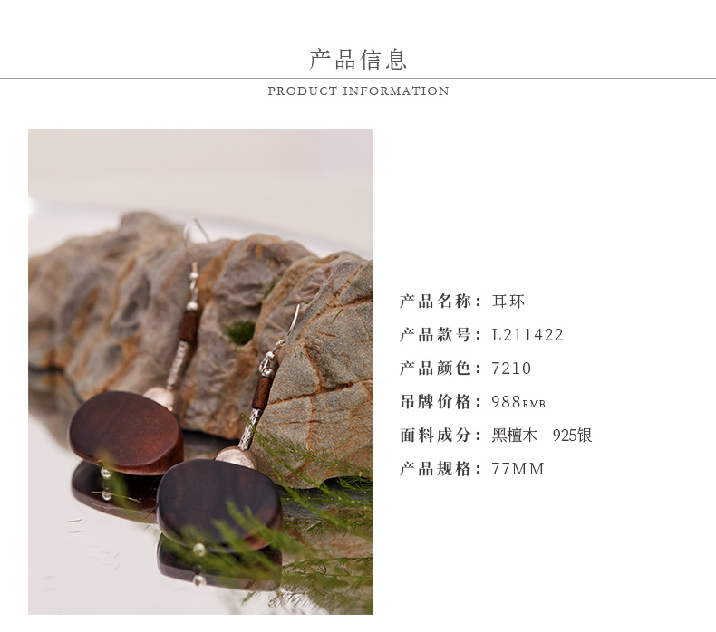 TANGY Collection/天意精品2021年春季新品黑檀木耳环925银