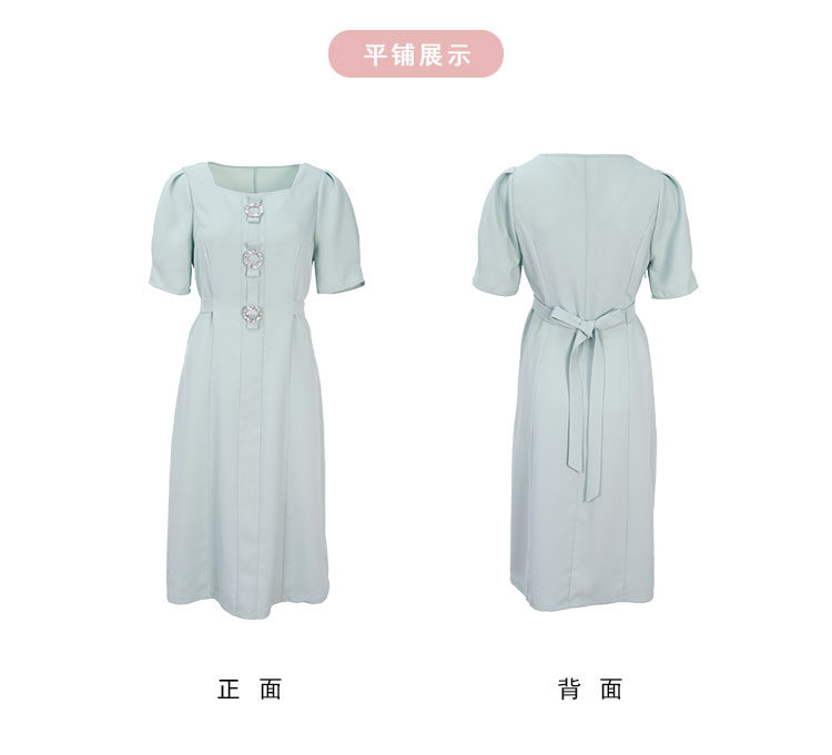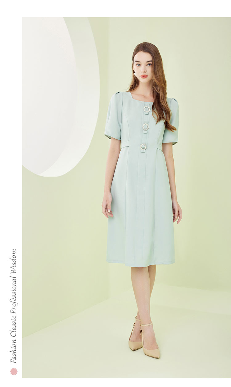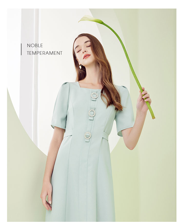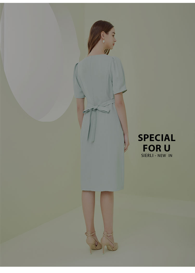 RF8E1斯尔丽瑟俪2023夏季新款名媛风纯色梯形领泡泡短袖连衣裙