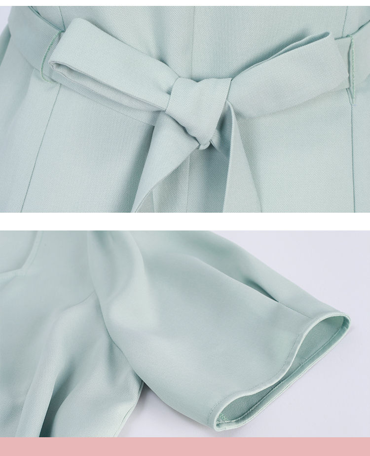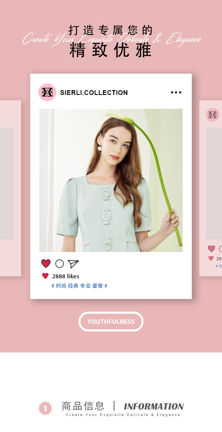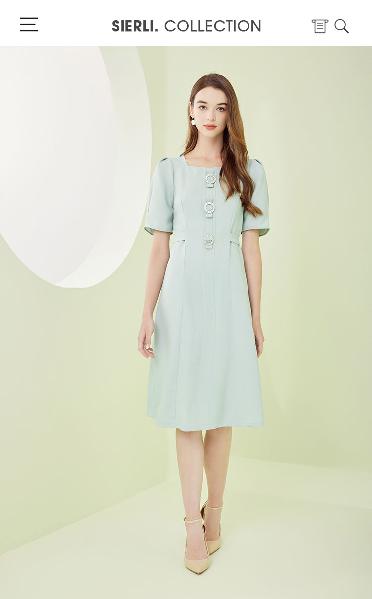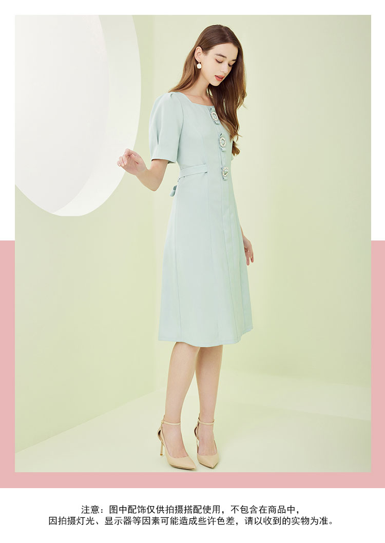 RF8E1斯尔丽瑟俪2023夏季新款名媛风纯色梯形领泡泡短袖连衣裙