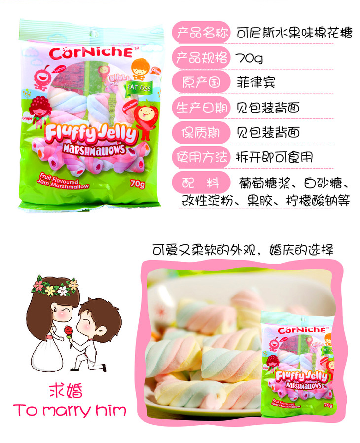 可尼斯 水果味酱夹心棉花糖 70g