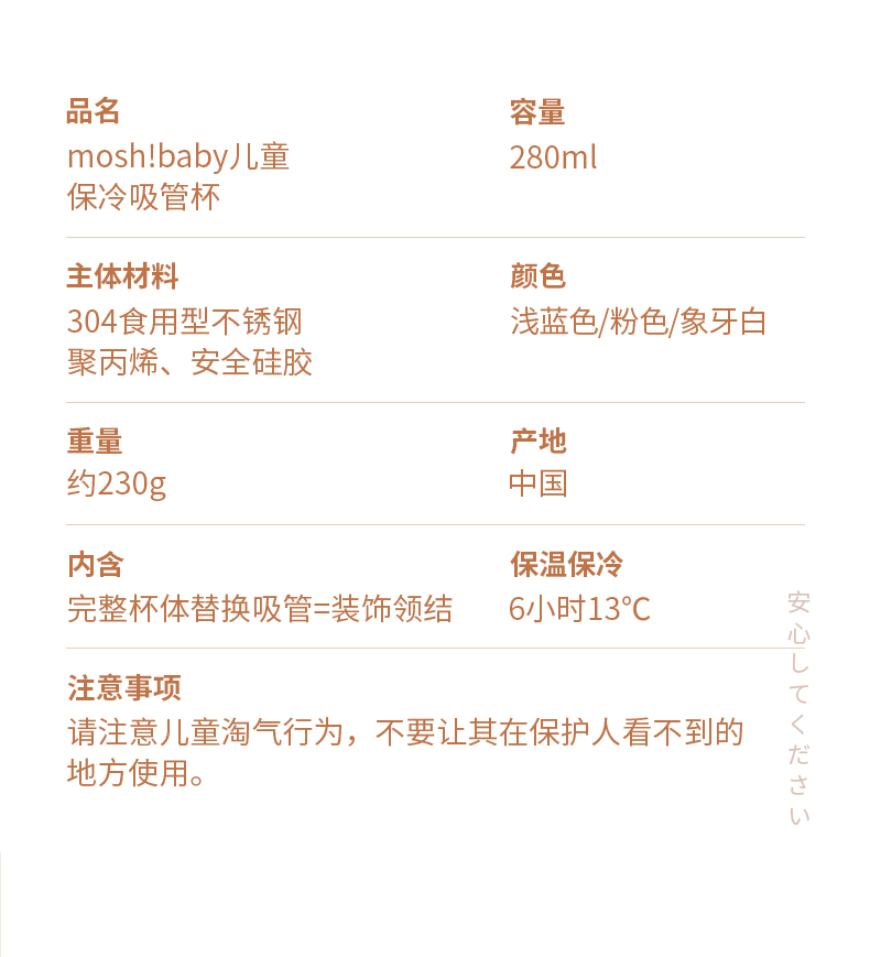 日本mosh! 便携婴儿不锈钢真空保温瓶280ml