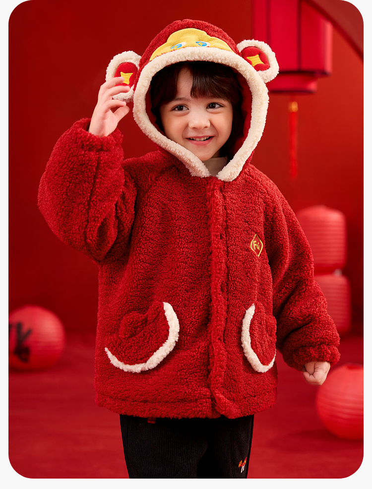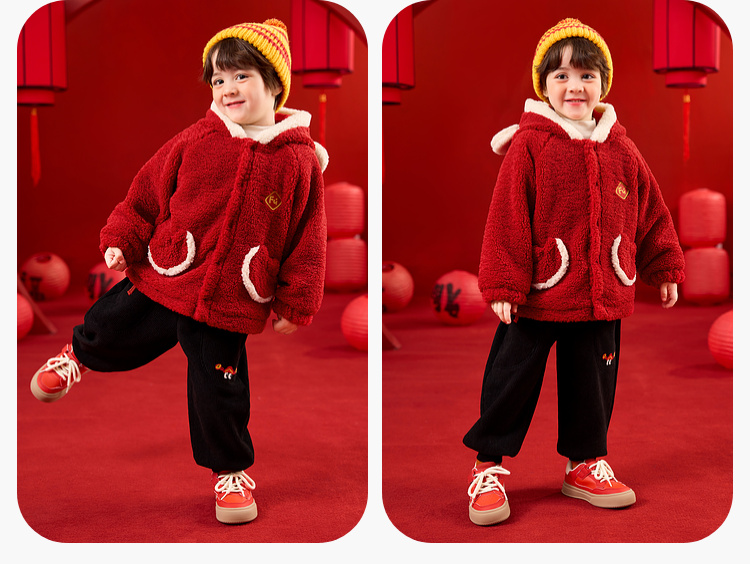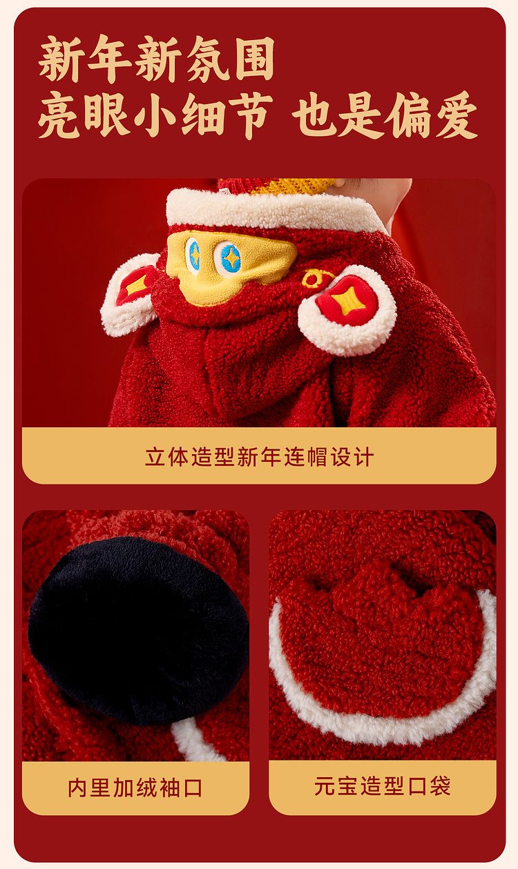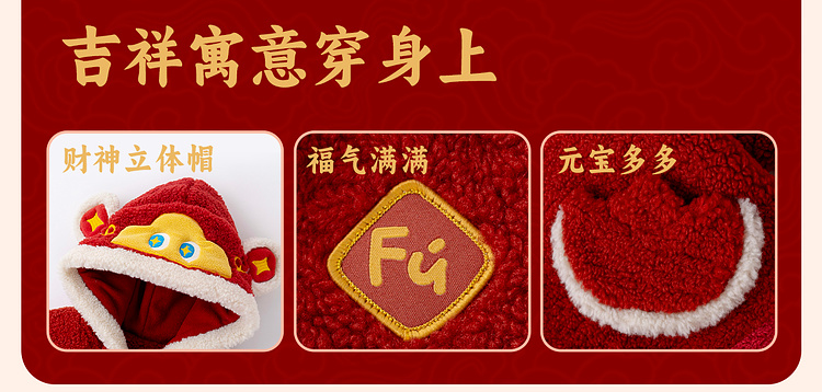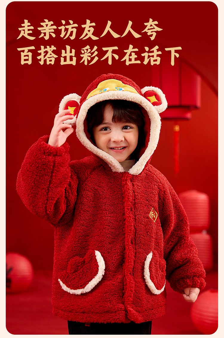 【限时限量】嘟嘟家儿童外套男童新年衣服女童拜年服宝宝冬季过年红色喜庆童装