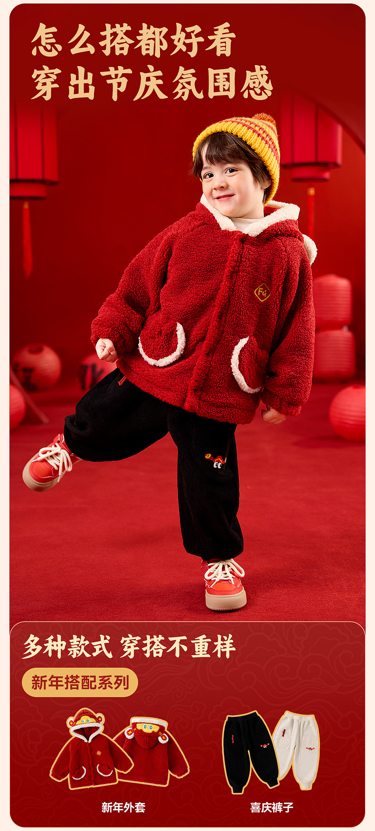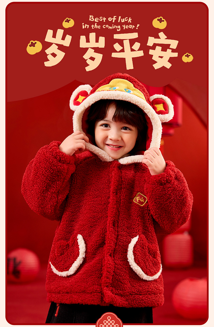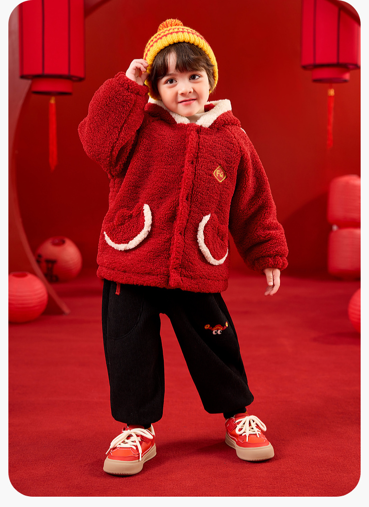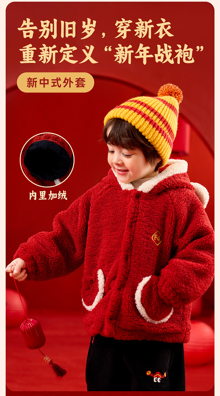 【限时限量】嘟嘟家儿童外套男童新年衣服女童拜年服宝宝冬季过年红色喜庆童装