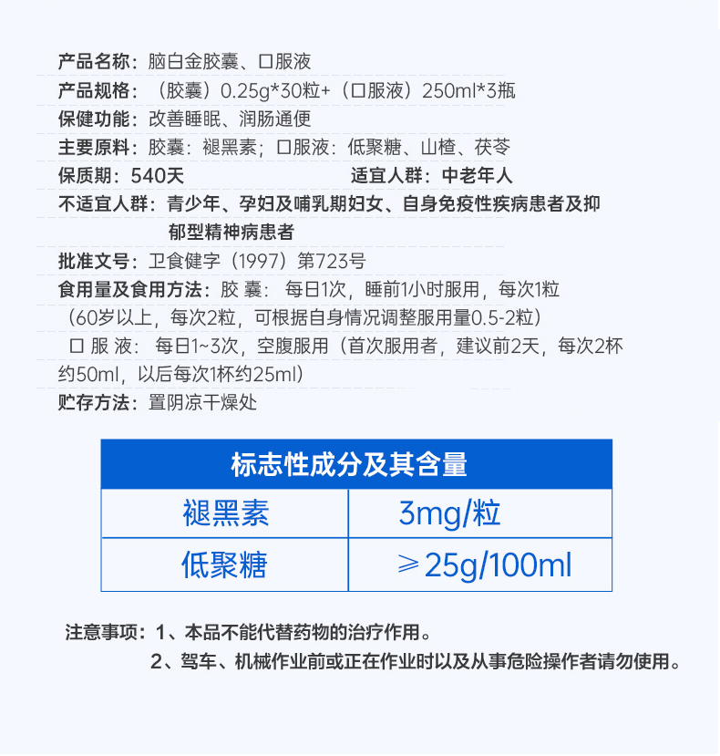 【买1送1盒氨基酸营养液】脑白金30天剂量 改善睡眠 润肠通便