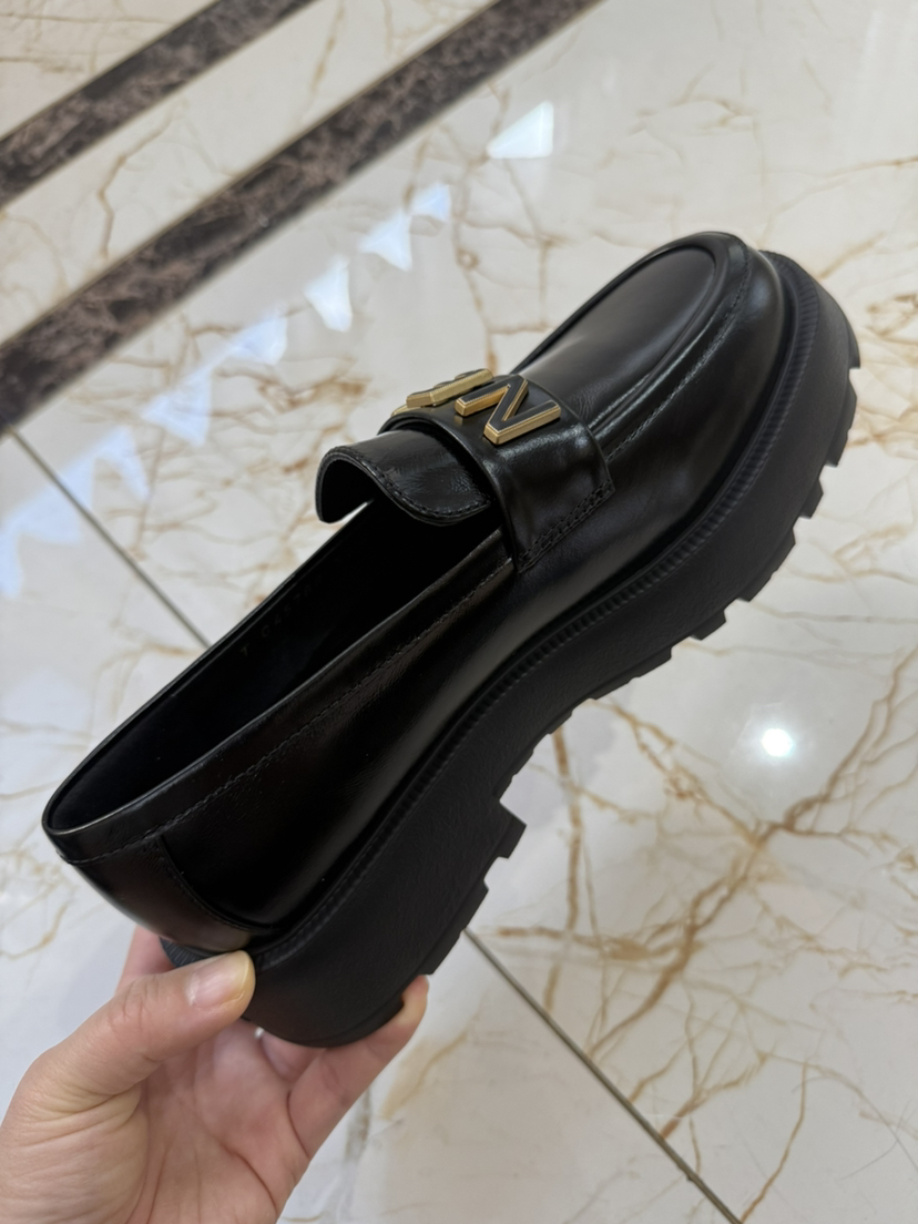 1029-8 原楦原材 轻便柔滑 好穿脱 头层褶皱小牛皮 发泡厚底 珐琅字母 乐福鞋