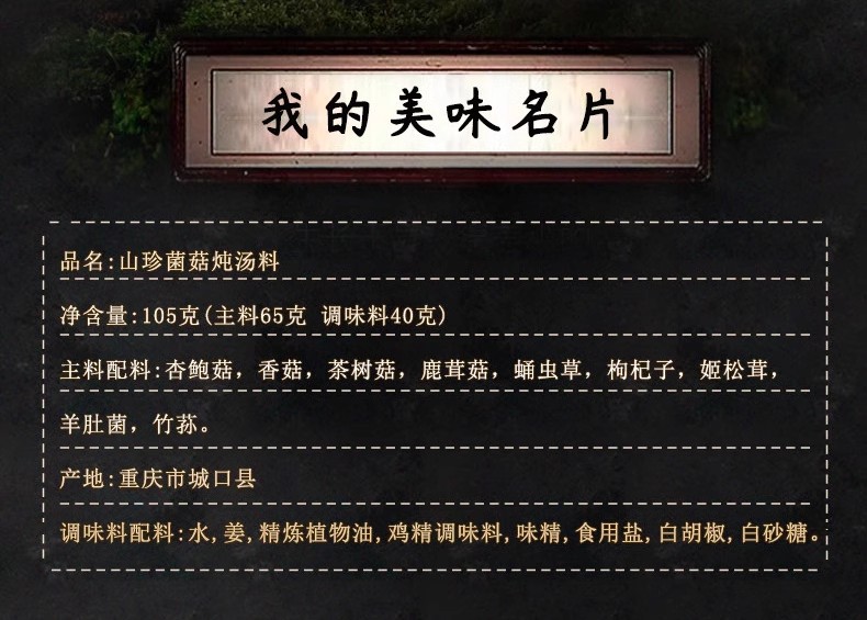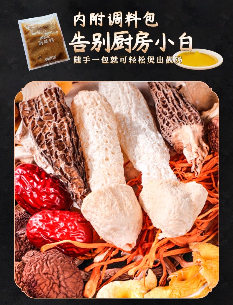 周君记松茸羊肚菌竹荪菌汤包干货山珍汤料包菌类香菇煲汤料炖鸡料