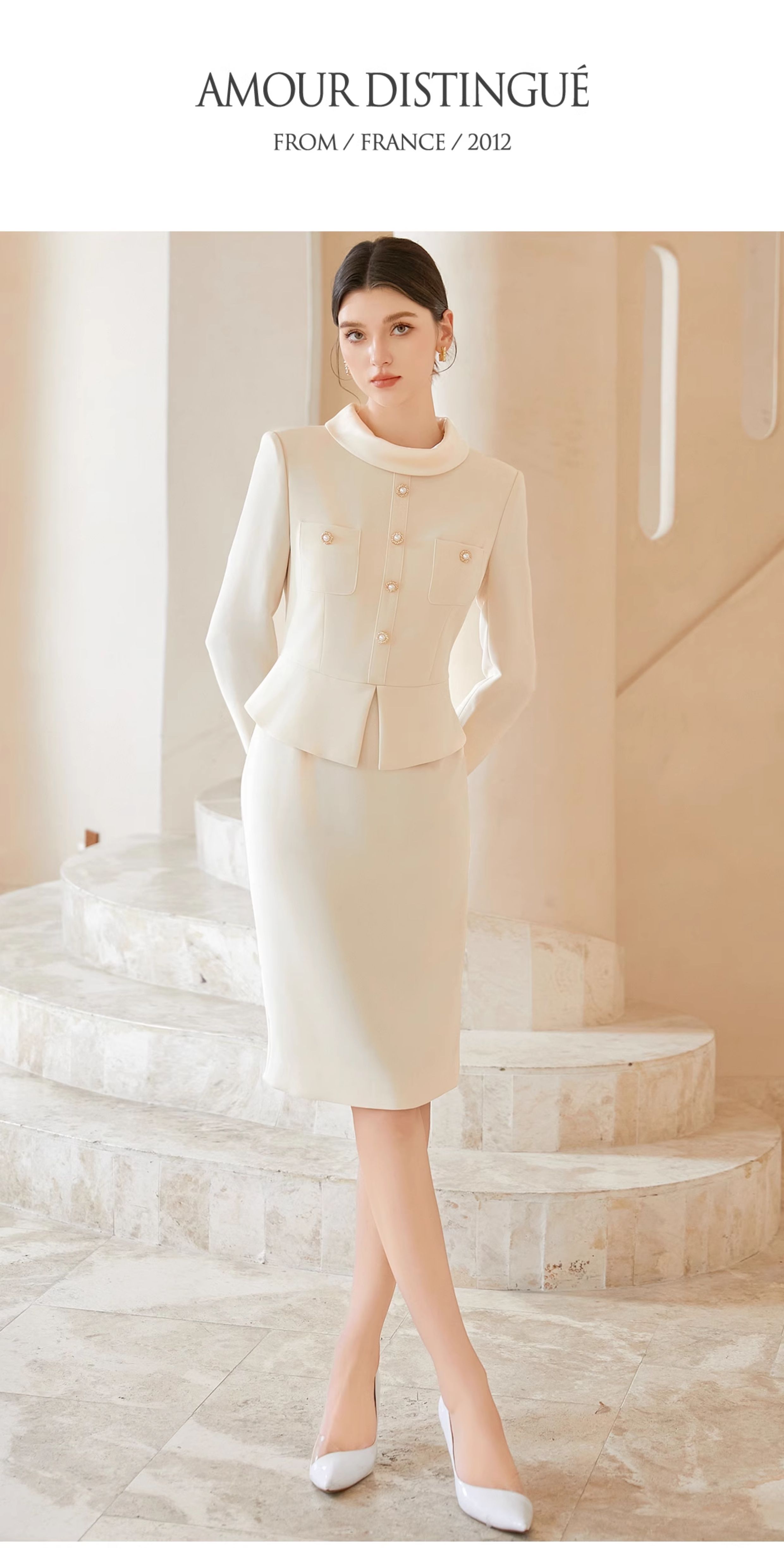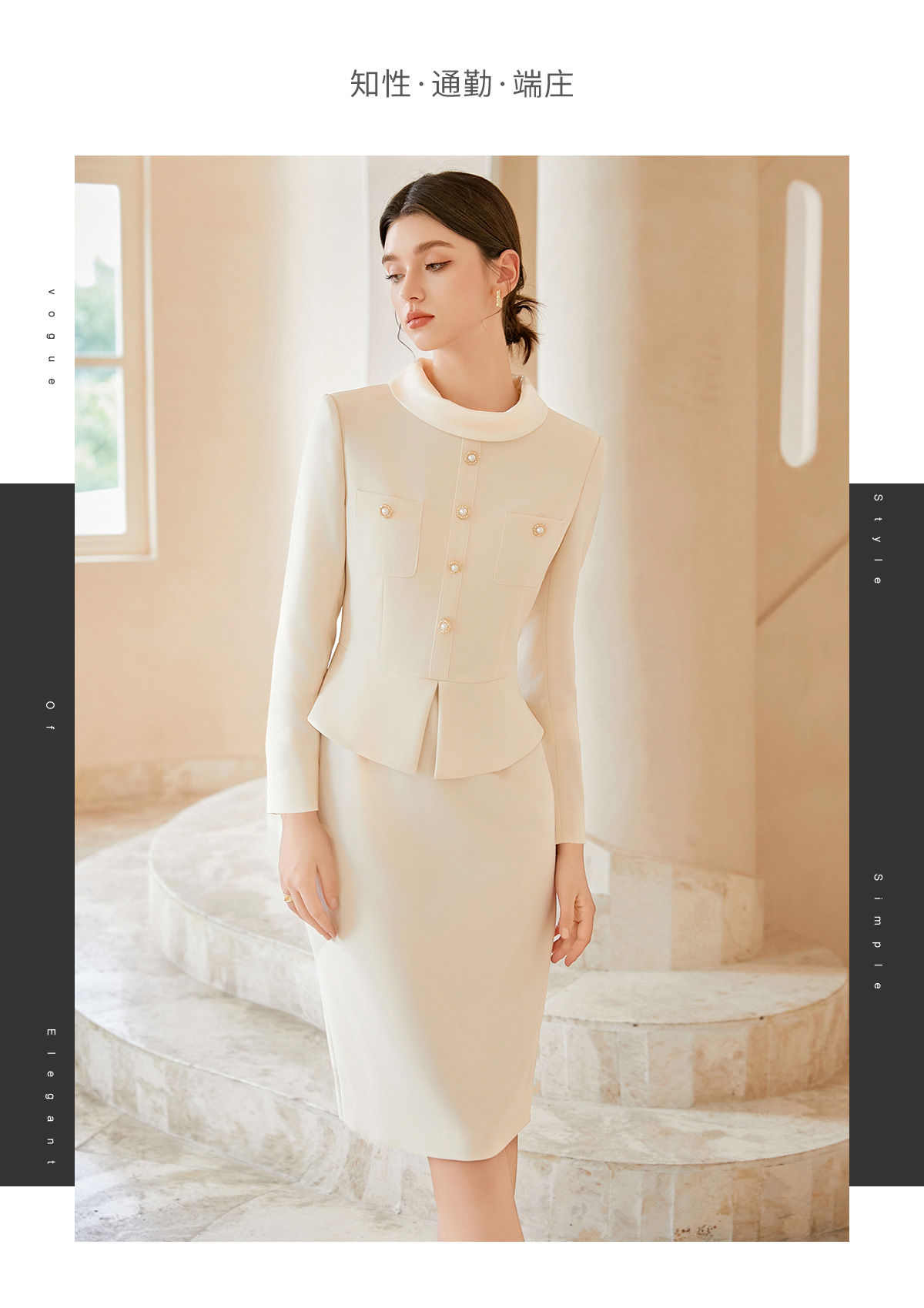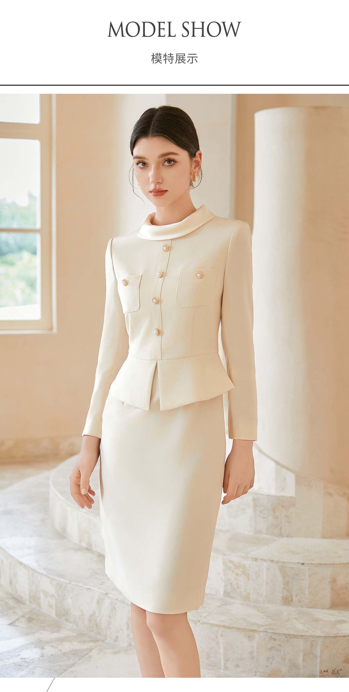 IWY/米色醋酸假两件连衣裙气质高端女神范圆领正装千金风套装裙Q1212