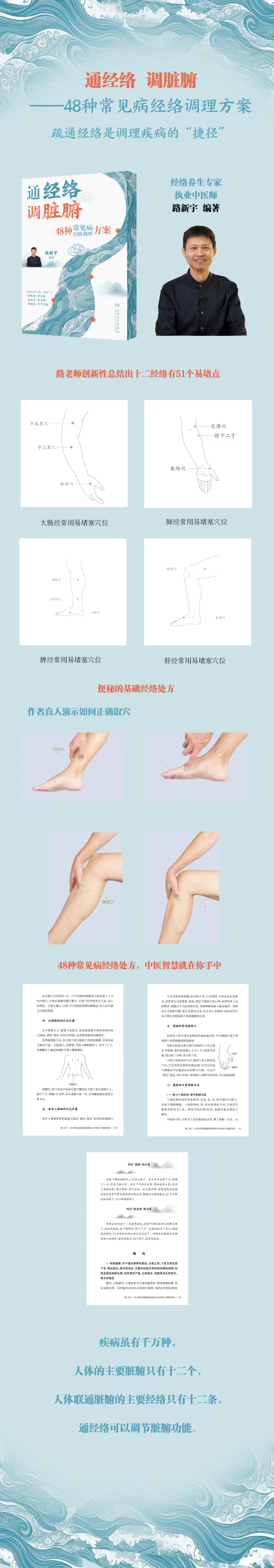 本书作者经过长期实践与思考总结出十二经络有51个易堵点,后经过学员、网友的大量实践反馈,证明了十二经络分别联通十二脏腑,经络状态可反映相应脏腑功能,疏通经络可以调节脏腑功能,帮助机体恢复常态,从而获得健康。 本书的总论部分阐释了疏通经络可以缓解病痛的原理,以及疏通经络易堵塞穴位的常用外治法和注意事项。 在中医看来,局部病痛可涉及多个脏腑,本书的各论部分介绍了不同疾病所对应的“经络处方”原则。“经络处方”是一种组合方式,根据病痛累及的脏腑,推导出相关联的脏腑,将多种外治法整合应用,以合理的方式疏通相应经络,调节对应脏腑功能,进而减轻或消除病痛。 疾病虽有千万种,人体的主要脏腑只有十二个,人体联通脏腑的主要经络只有十二条,通经络可以调节脏腑功能。本书虽然只介绍了48种常见病的经络调理方案,但根据“经络处方”原则,可以在治疗其他疾病的过程中,自我设计方案来配合调理。 这本书既利于中医爱好者学习,也可供临床医师参考。 | ||