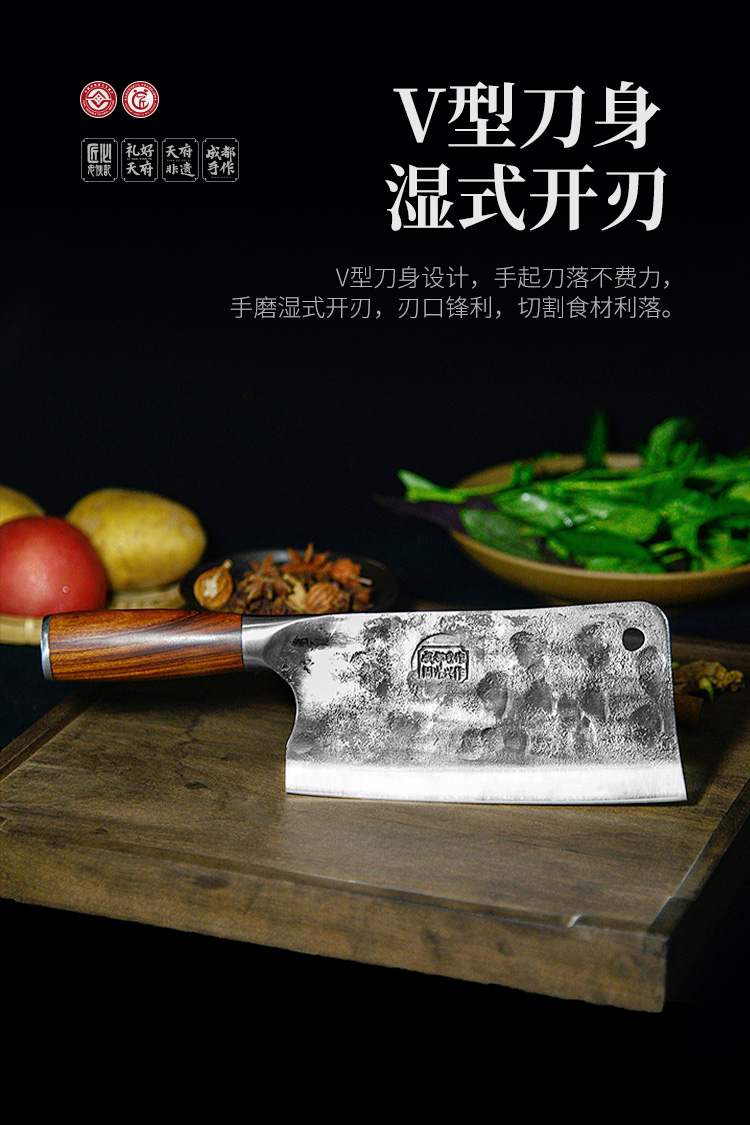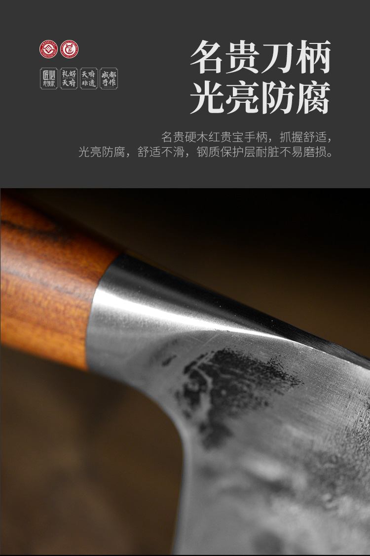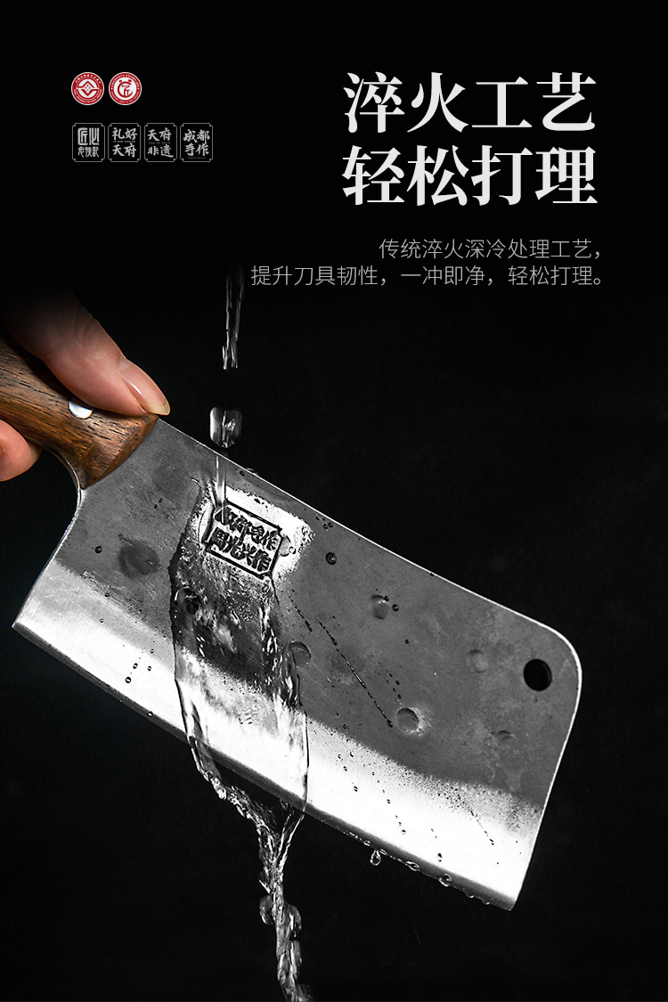 【产品特点】:非遗技艺,匠心手作,全钢锻造,手工锻打,夹钢绝技,刀柄一体,锋利耐用