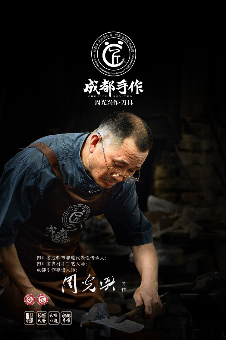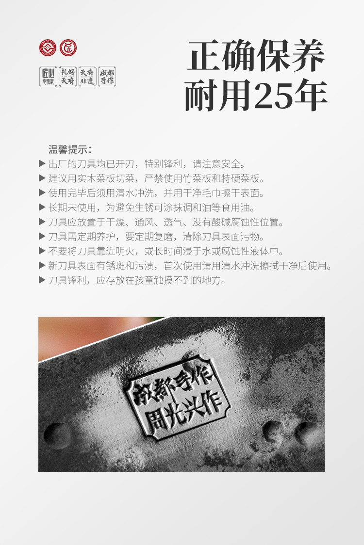 #非遗礼遇季#【周光兴作刀具】成都手作周光兴作大师系列/大厨切片刀/480斩骨刀/170多用尖刀 切菜切肉砍骨剁骨剔 骨刀【非遗技艺】【手工锻打】锰钢夹钢老式刀具 清仓活动售完即止