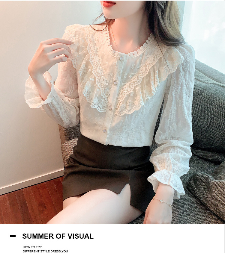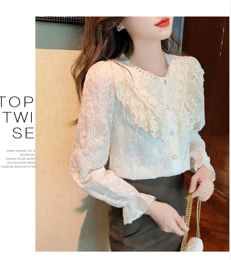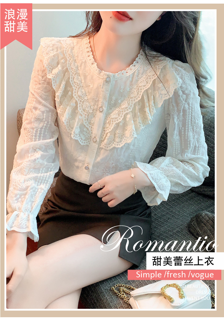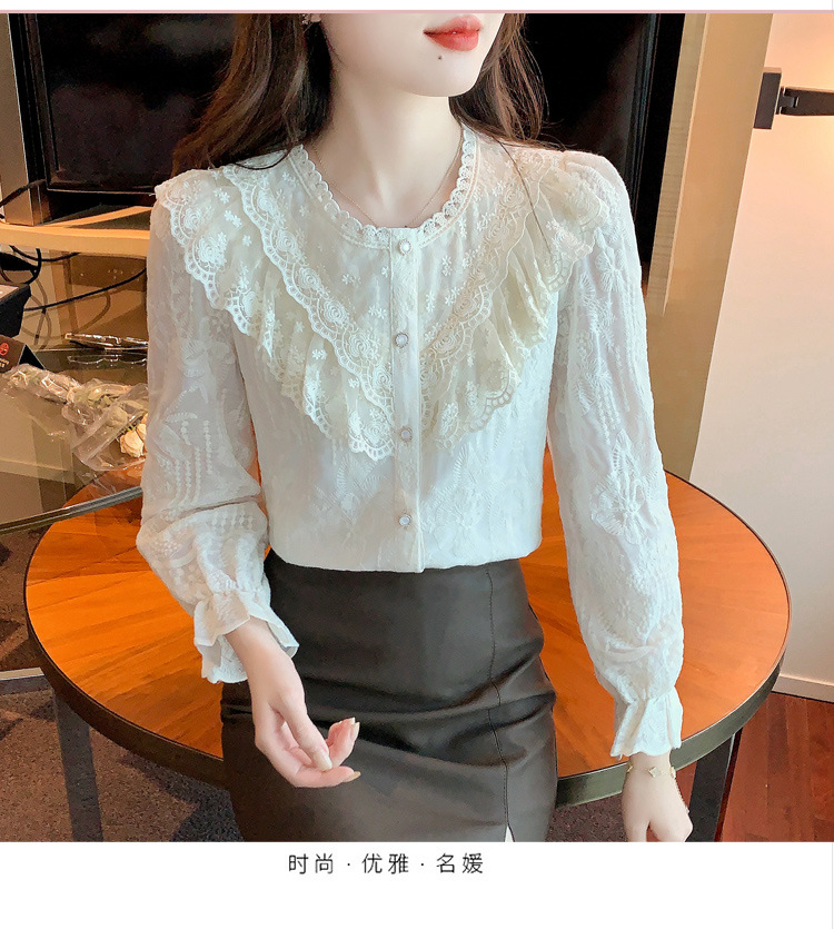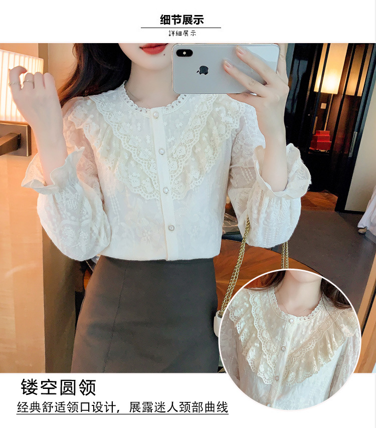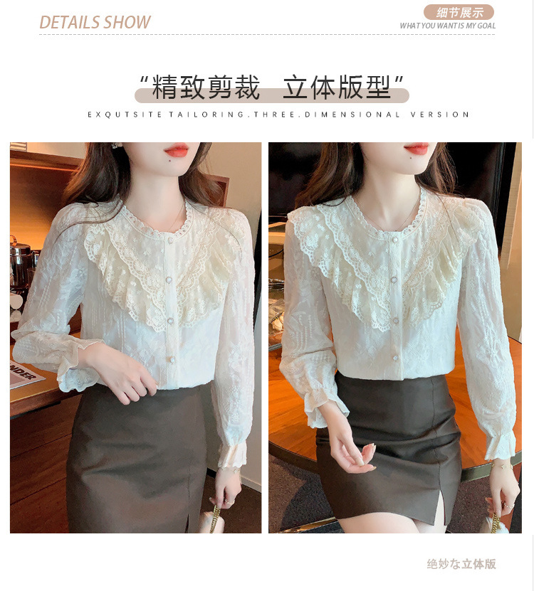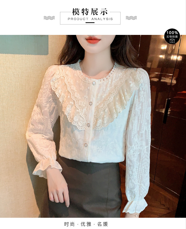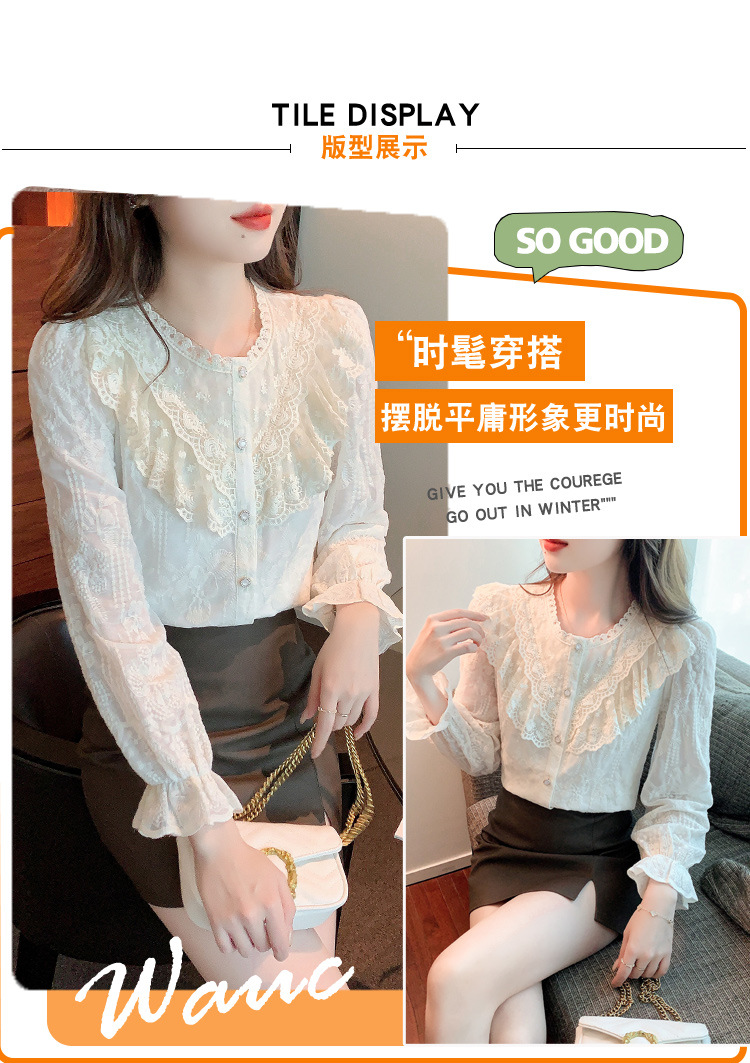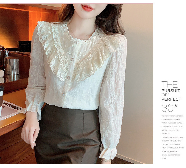 设计感小众纯色衬衫,秋季新款时尚立领上衣洋气蕾丝打底衫KQL-9702