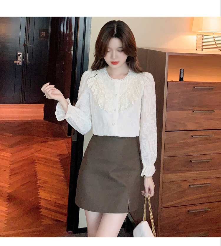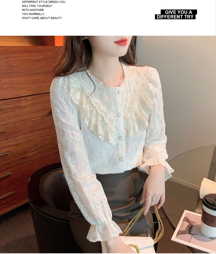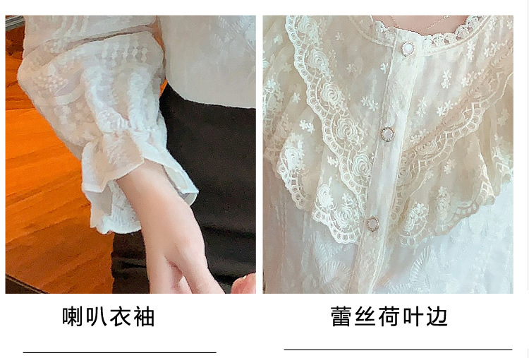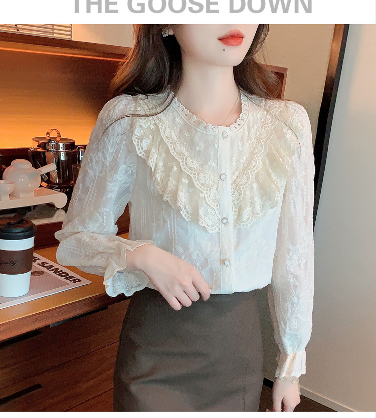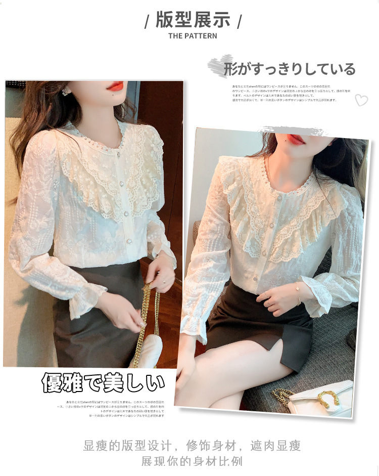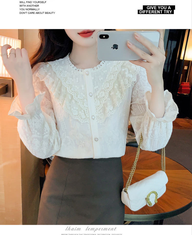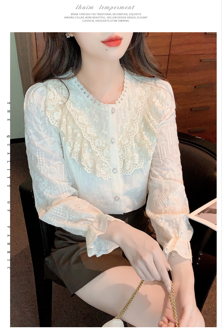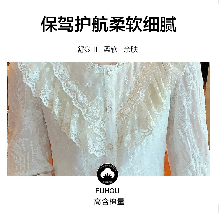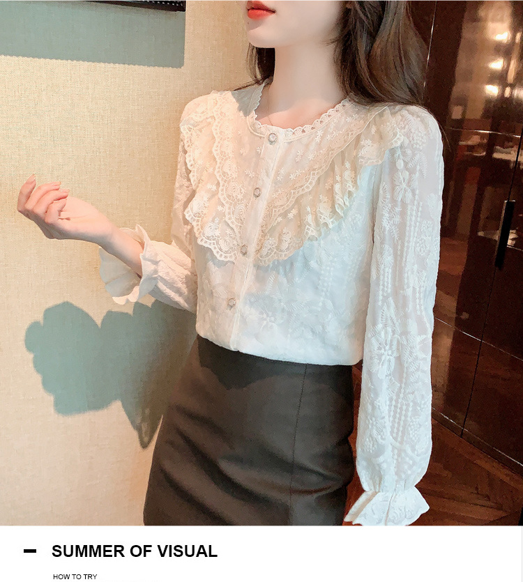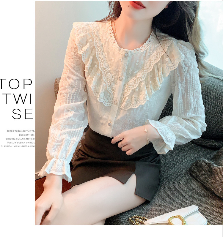 设计感小众纯色衬衫,秋季新款时尚立领上衣洋气蕾丝打底衫KQL-9702