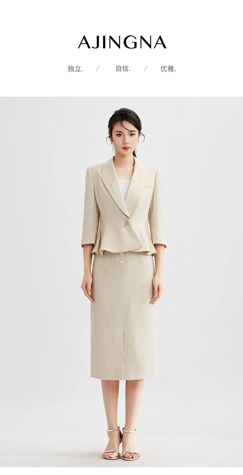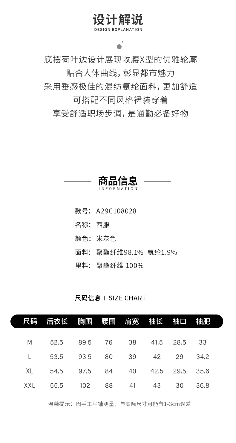 【商场同款】阿菁娜2024春季新款荷叶边修身通勤西服外套A29C108028