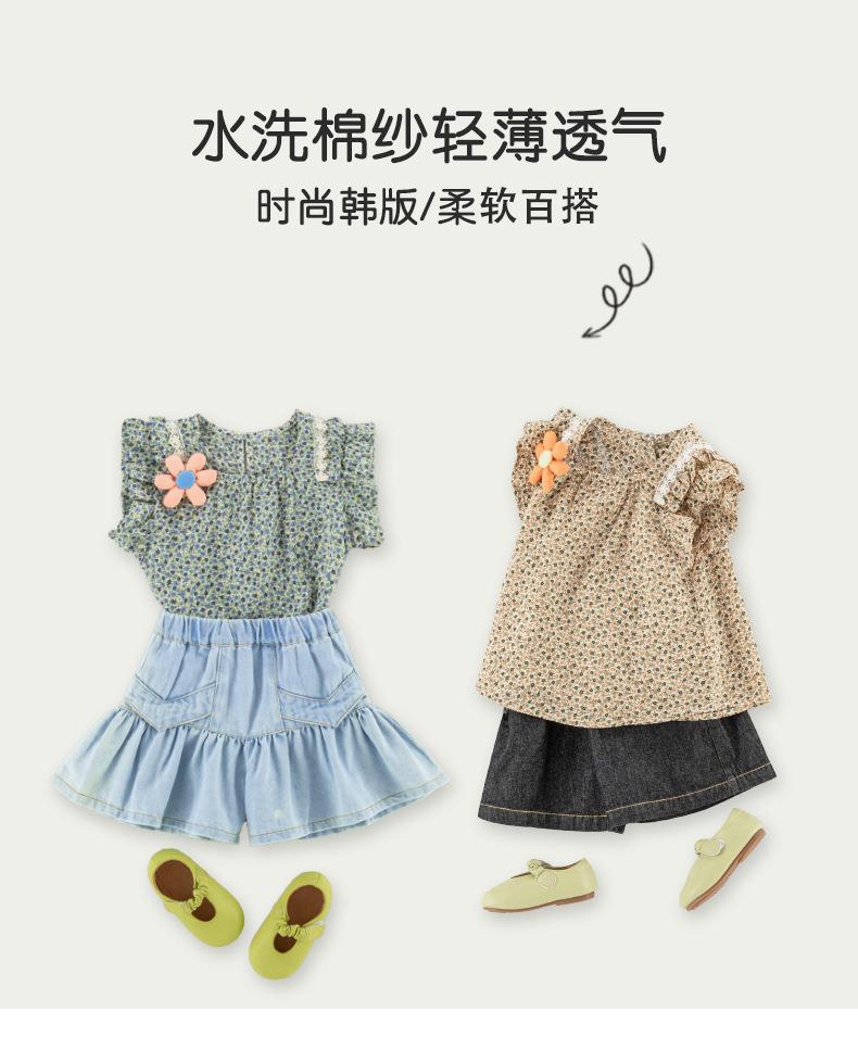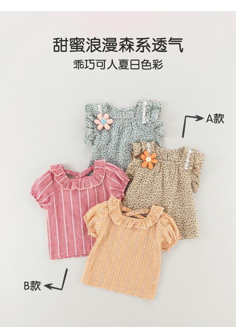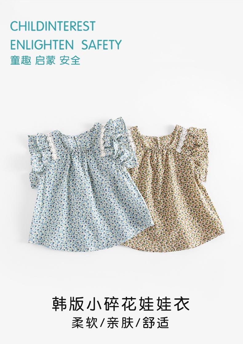 女童娃娃衫夏季薄款宝宝碎花衬衫小童韩版短袖上衣夏装儿童娃娃衣