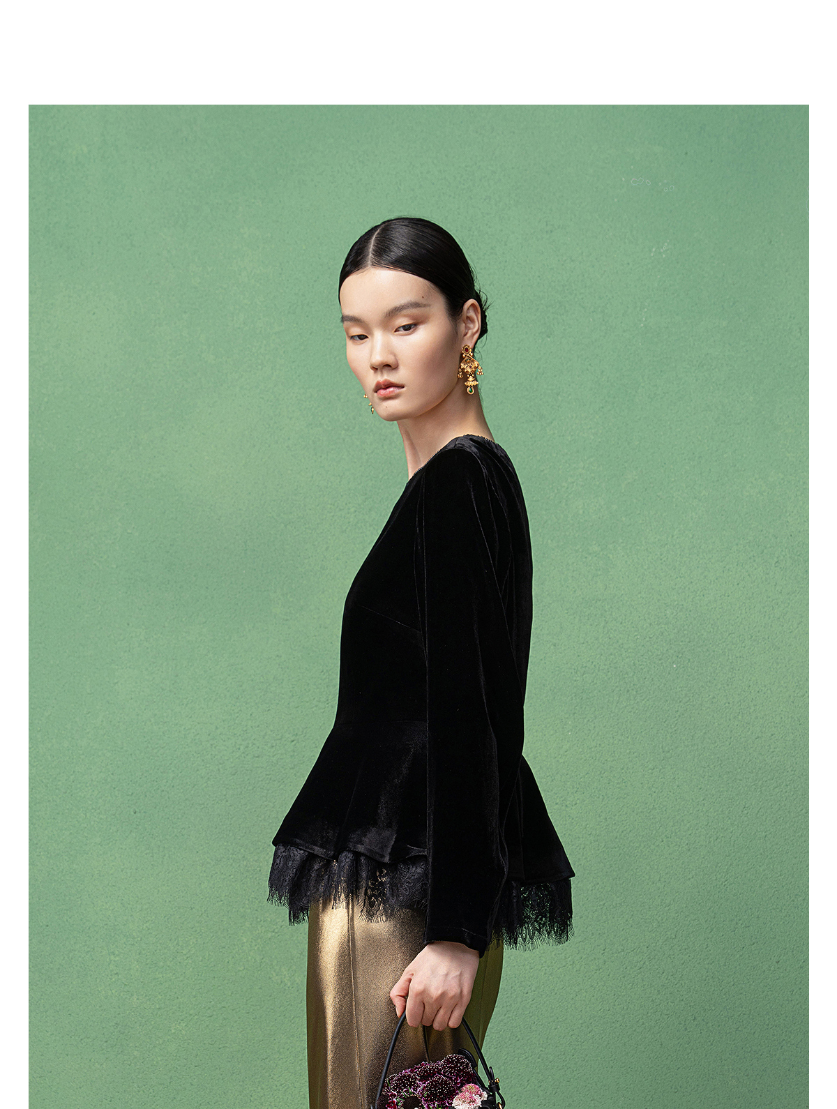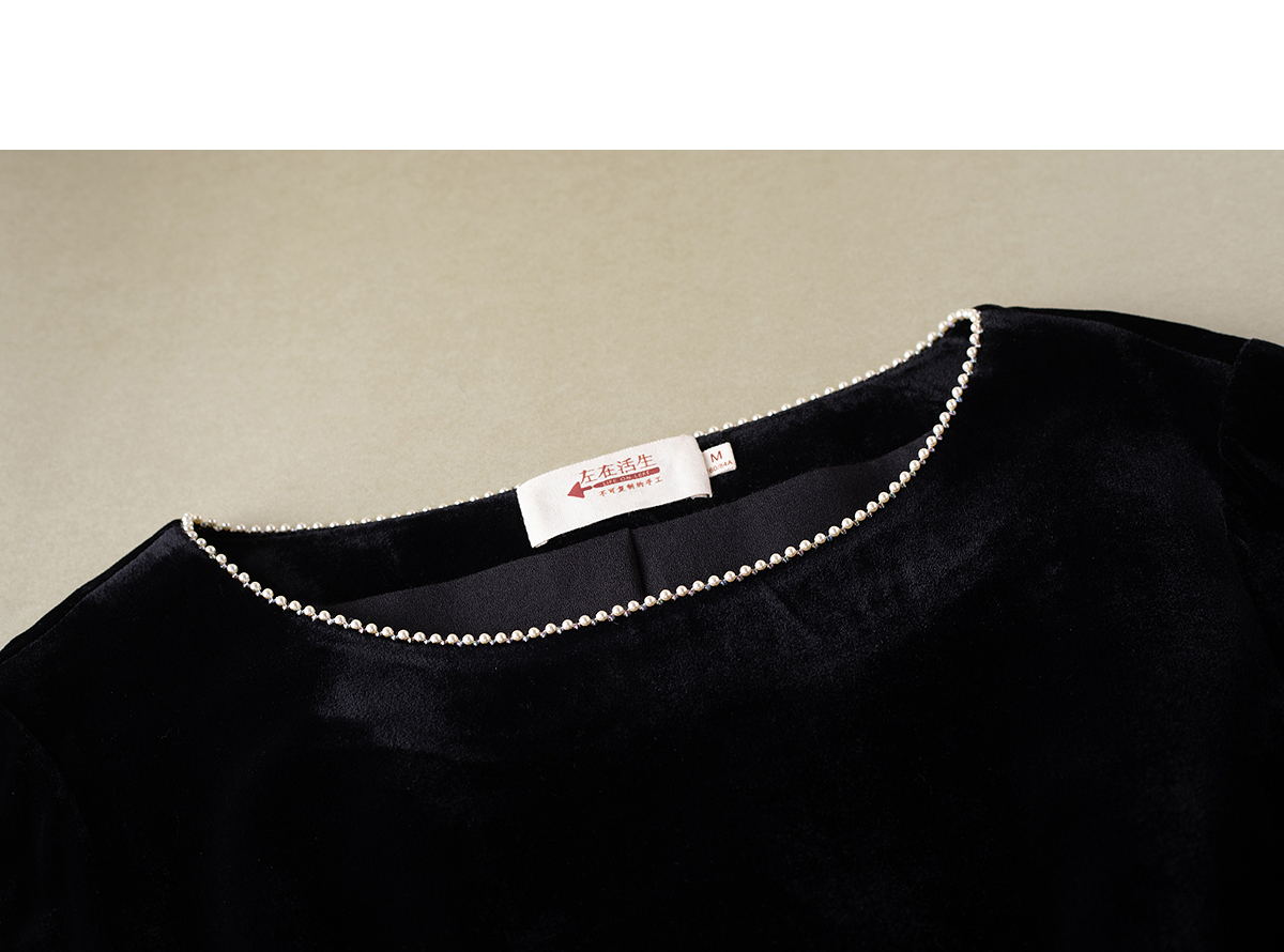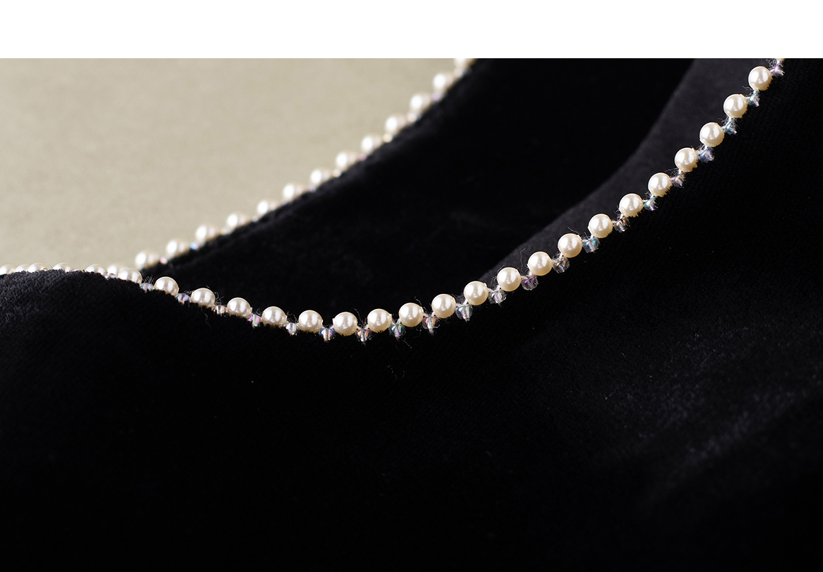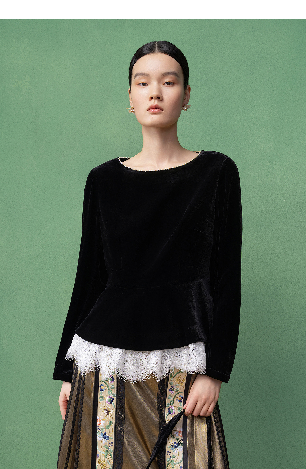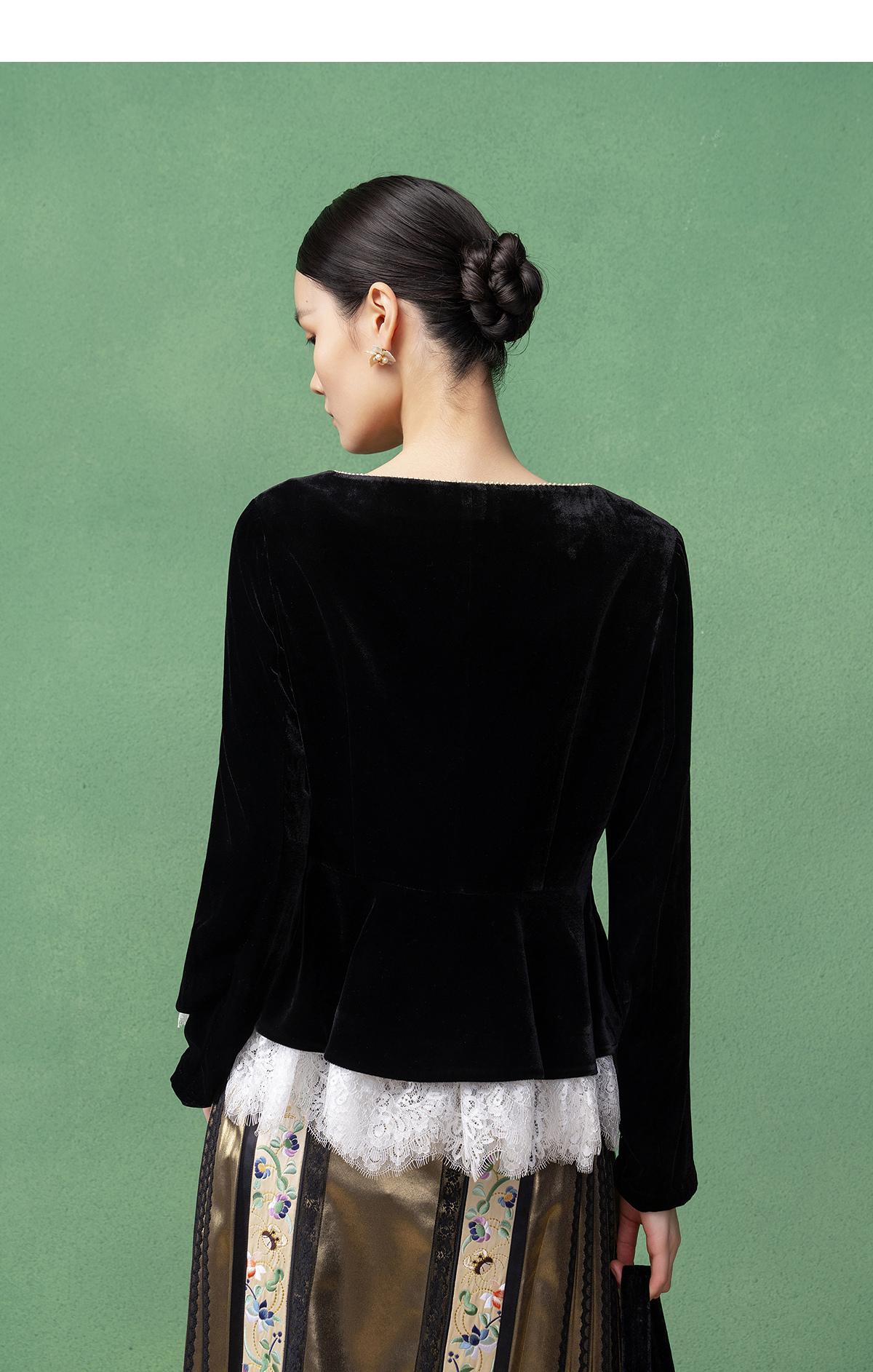 【林栖设计小店】真丝丝绒T恤手工钉珠蕾丝2025秋季新款上衣1953070