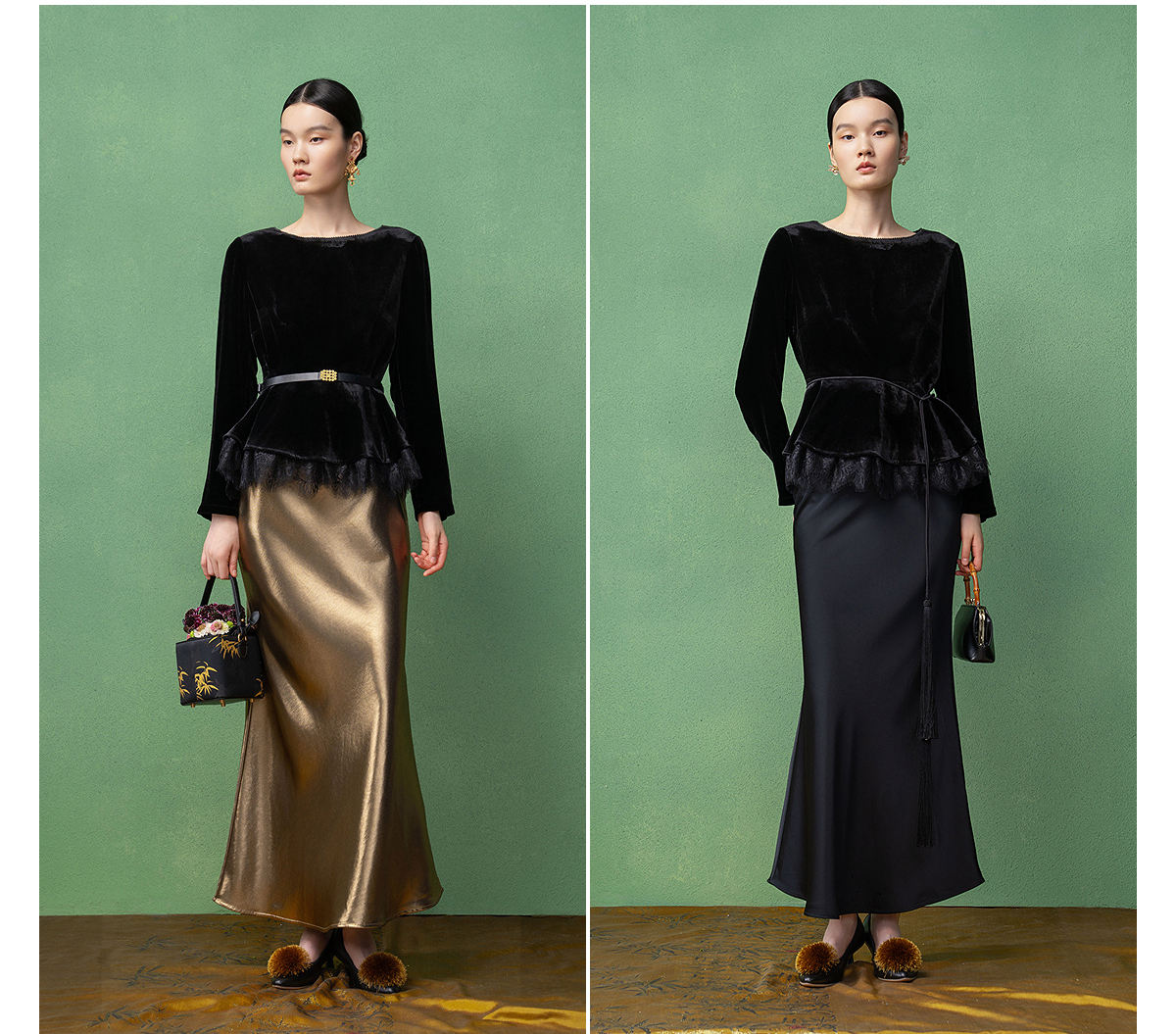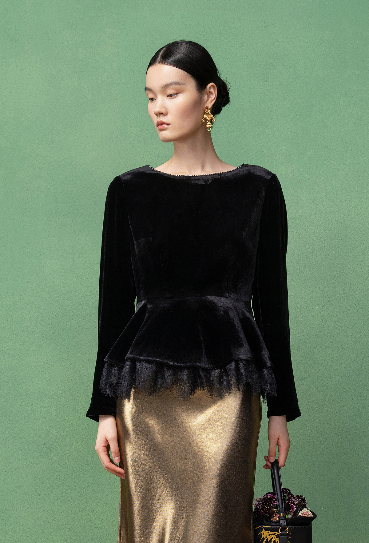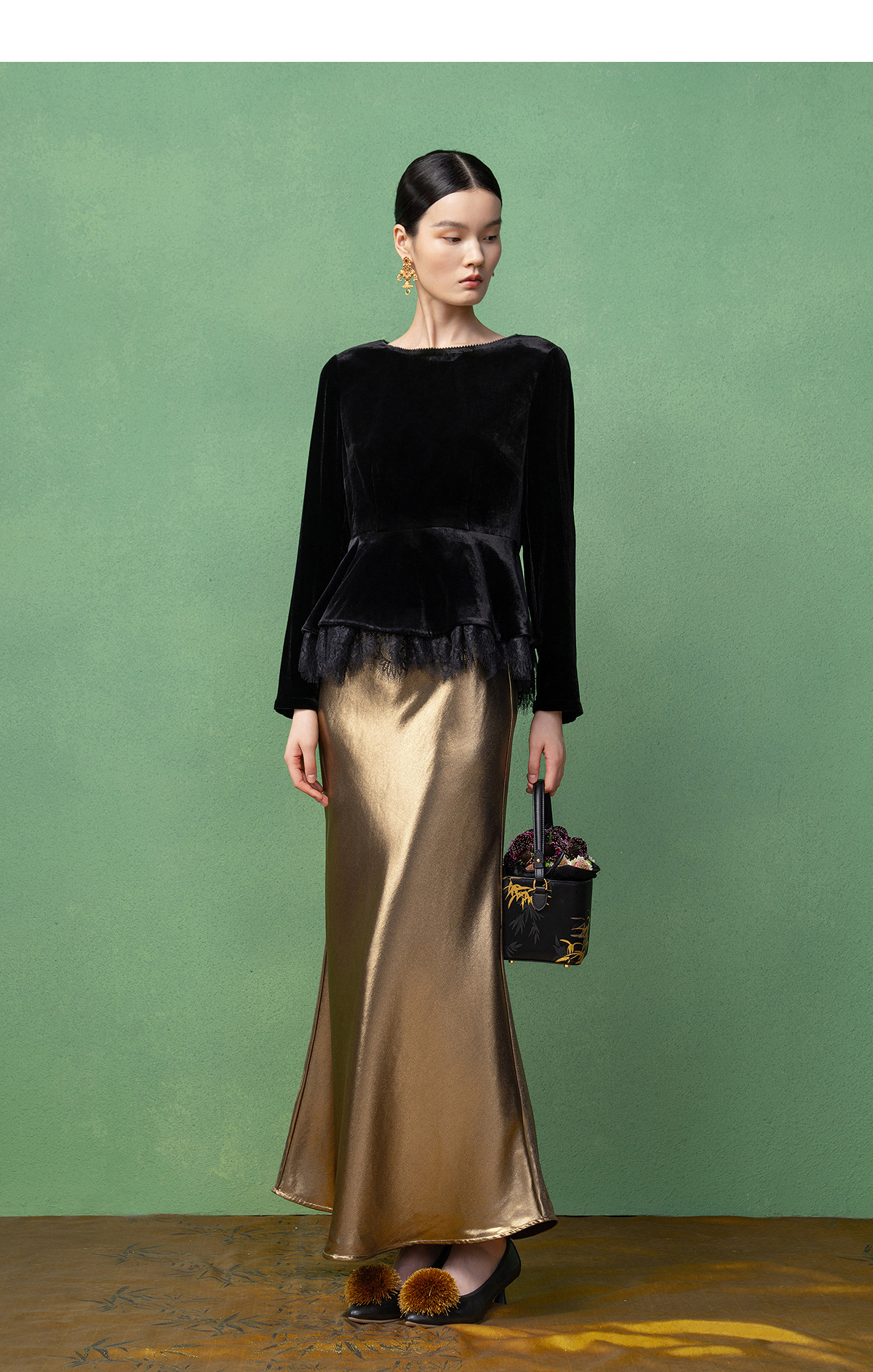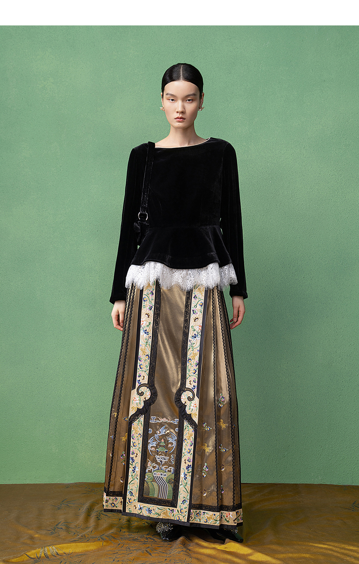 【林栖设计小店】真丝丝绒T恤手工钉珠蕾丝2025秋季新款上衣1953070