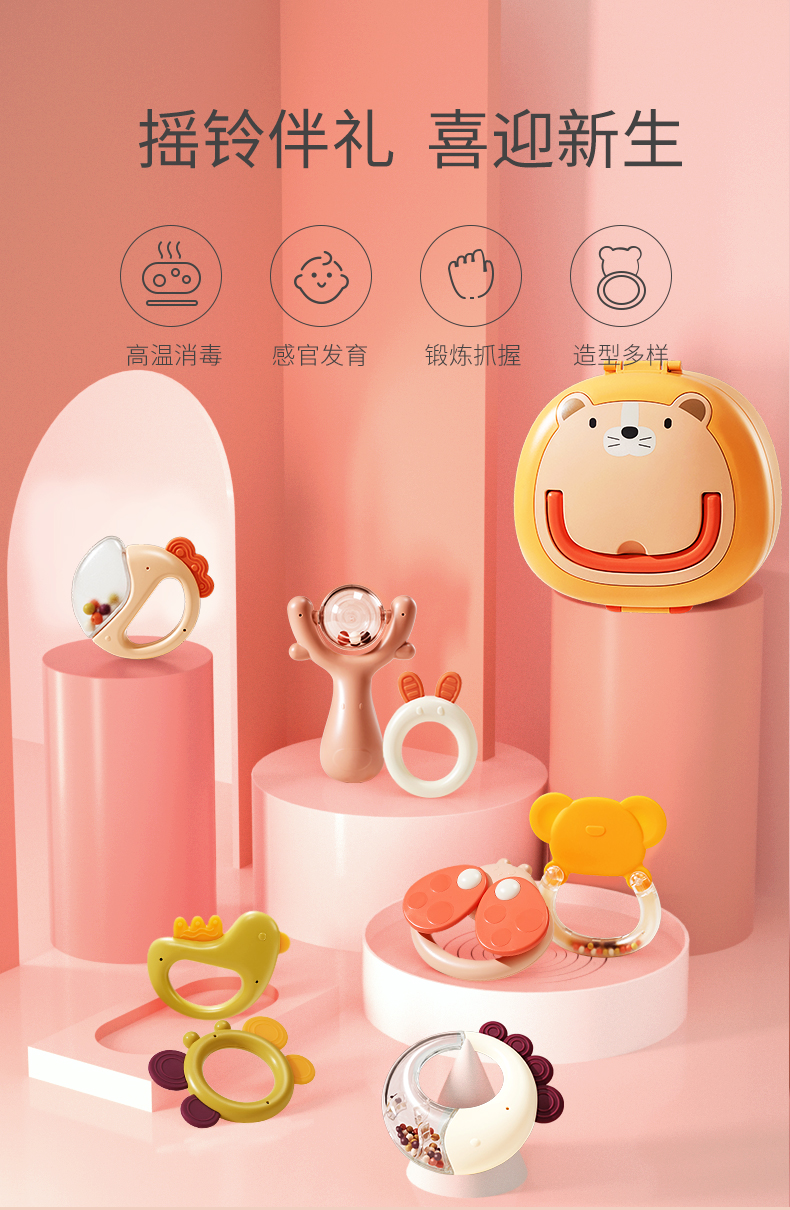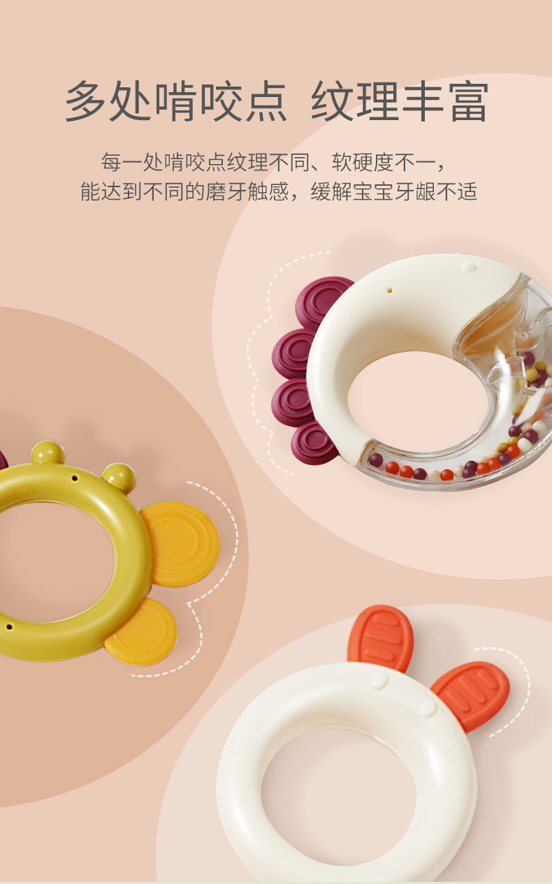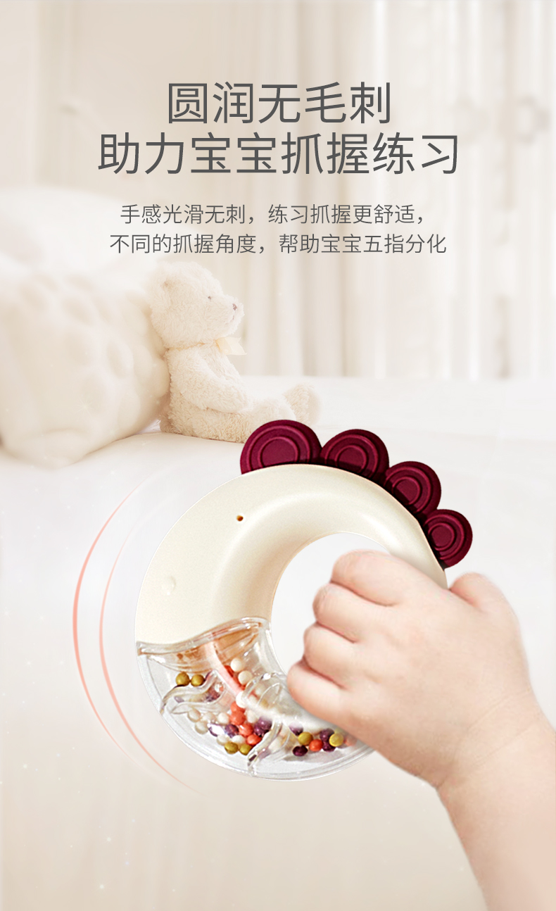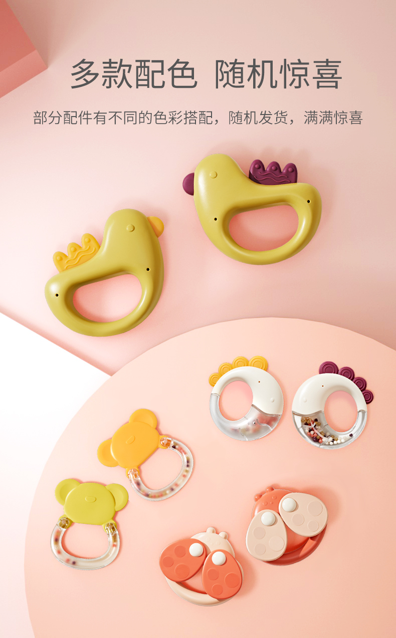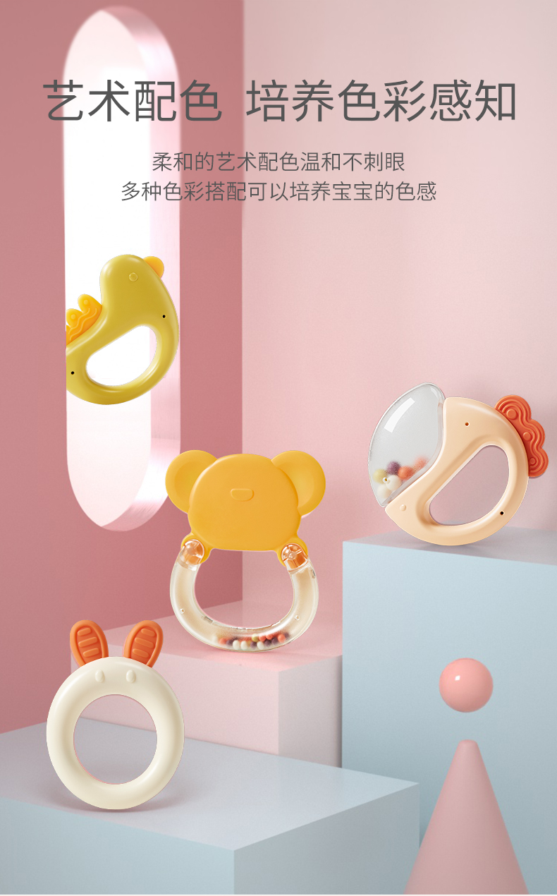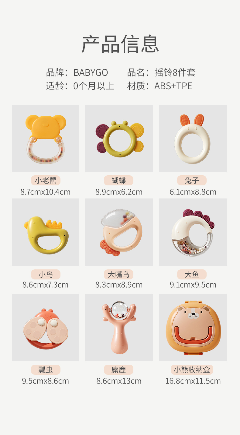 BABYGO婴儿手摇铃有声会动早教益智玩具1岁宝宝牙胶可啃咬