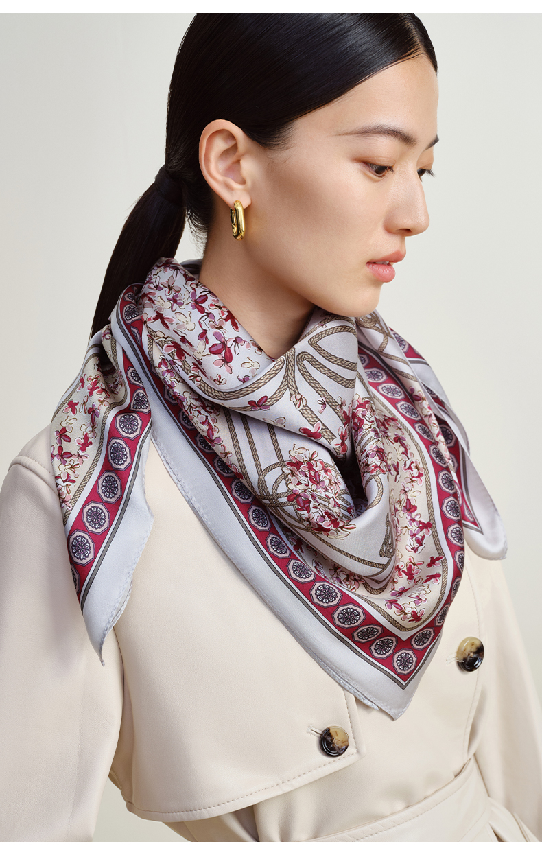 万事利“桂华如玉”88厘米双面印花大方巾