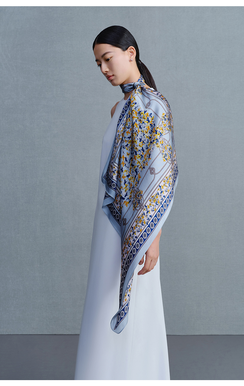 万事利“丽芙花园”51厘米双面印花真丝小方巾