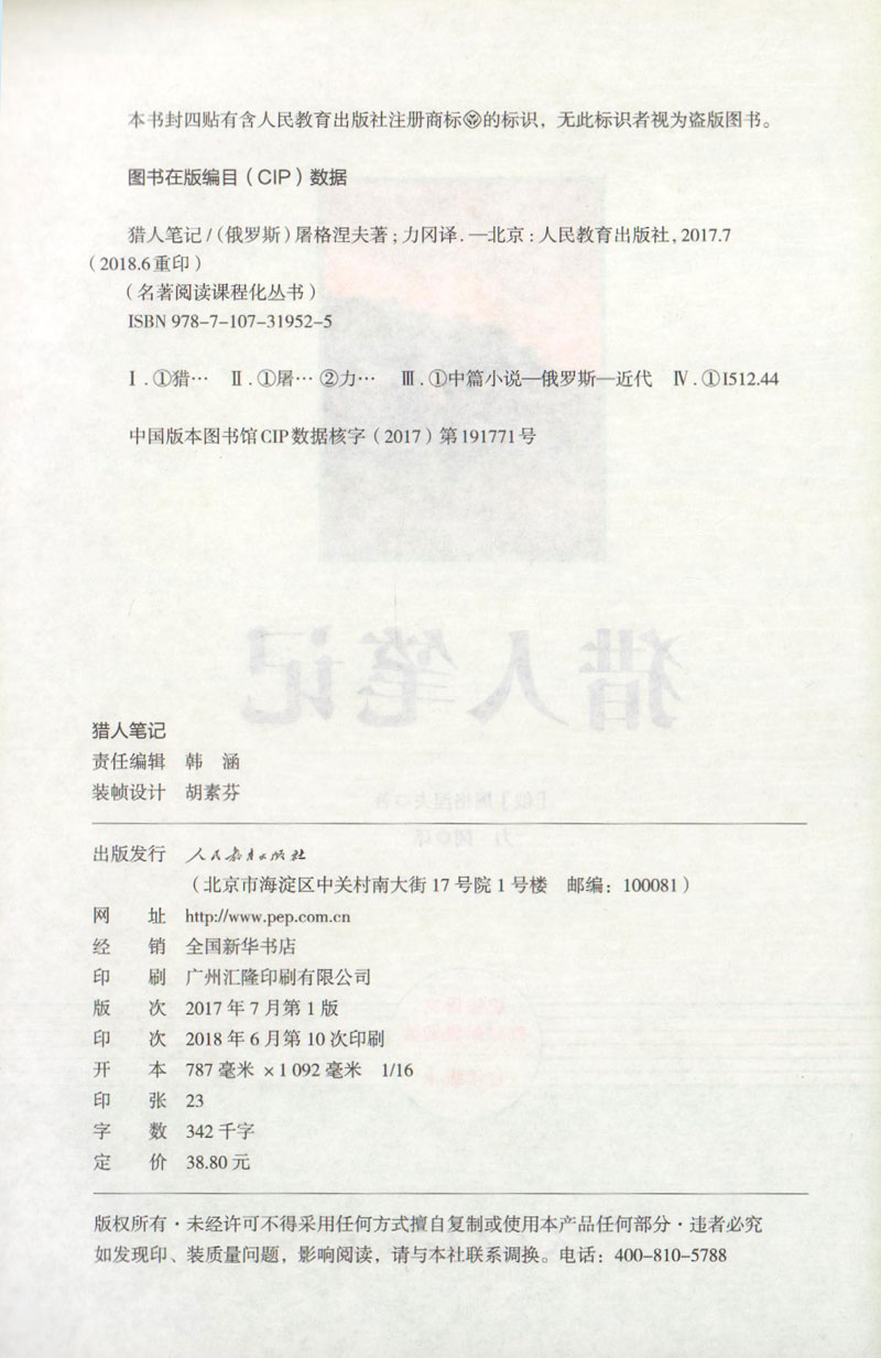 正版 猎人笔记 7年级上册/七年级上部编版书目/初中新编统编语文教材配套阅读/完整版/学校人教版 人民教育出版社
