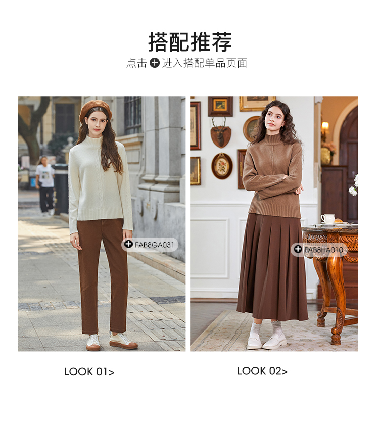 Famecoco范可儿羊毛衫100%纯羊毛套头毛衣百搭打底衫FAB8DB023