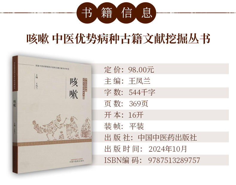 咳嗽 中医优势病种古籍文献挖掘丛书 主编王凤兰 180余种对中医咳嗽论述内容加以整理而成 9787513289757中国中医药出版社