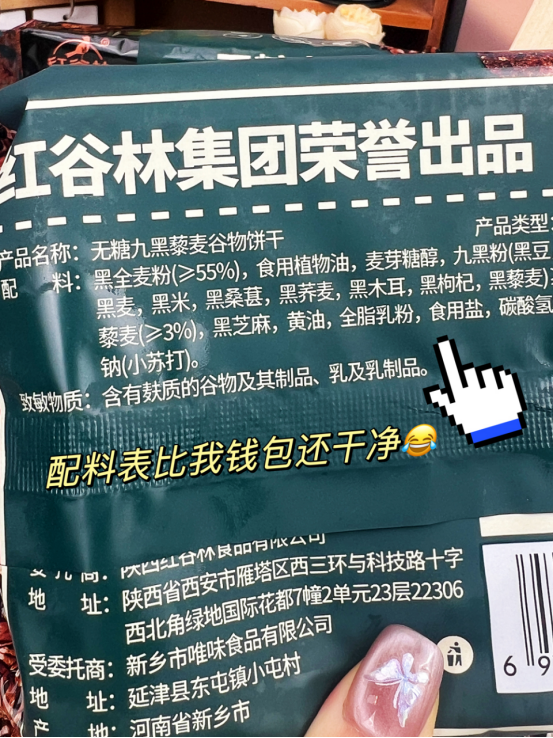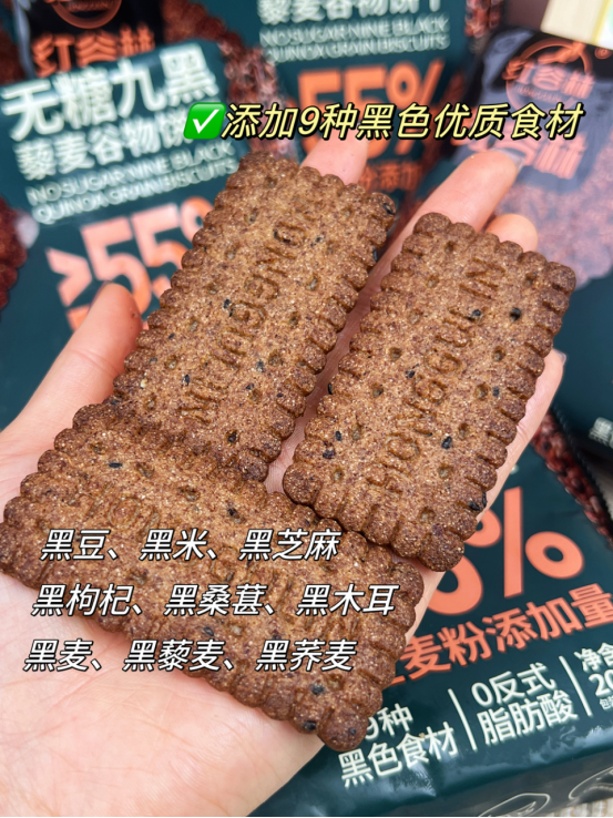 在这个快节奏的生活里 早八人每天都是急急忙忙的踩点上班,吃饭不规律 不是吃外卖,就是在点外卖的路上 是不是常常忽略了给自己的身材加点“料”? 别怕,今天就给大家安利两款我的早餐新宠 红谷林 无糖高纤9黑/9红藜麦谷物饼干 名字就是配料表,干净!好吃!饱腹!方便!