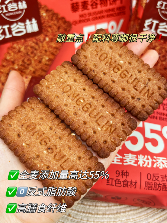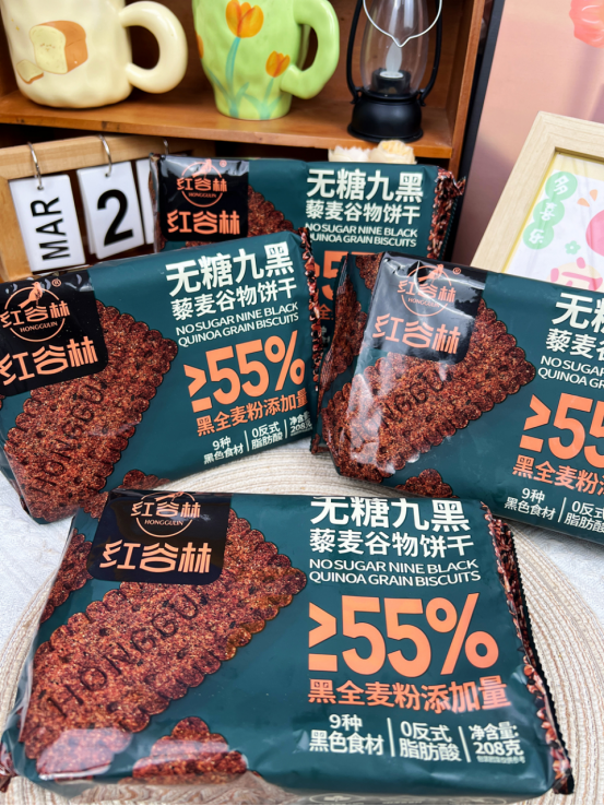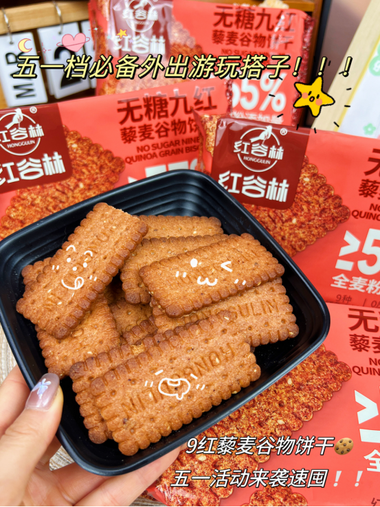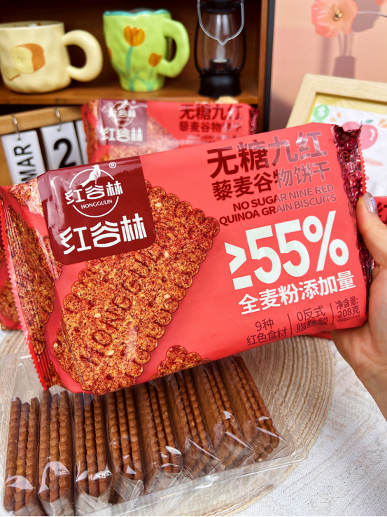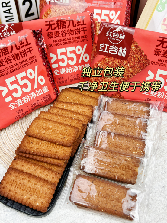 还有女生爱吃的9红系列! 红谷林-无糖高纤9红藜麦谷物饼干