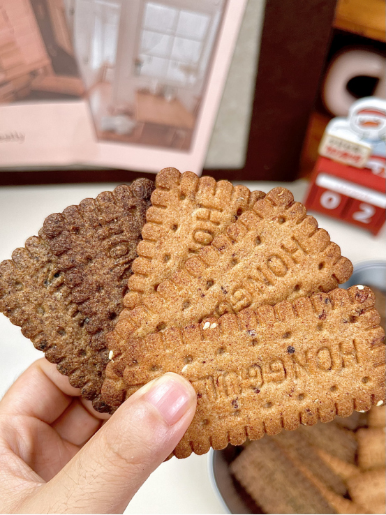 可以嚼到谷物的颗粒感 相对比其他的饼干更加的酥脆 又酥又脆,属于是越吃越上头!