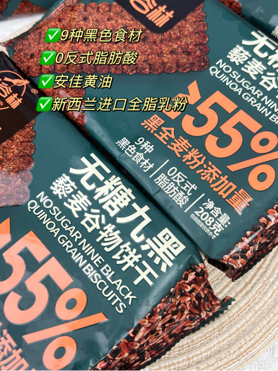 🍪干净食材:9种黑色谷物/0种红色谷物,香昏了头 🍪0蔗糖添加,0反式脂肪酸,0防腐,0香精,0起酥油 🍪添加藜麦,更增加了满满谷物香 🍪进口新西兰黄油与新西兰乳粉,让饼干更加酥脆