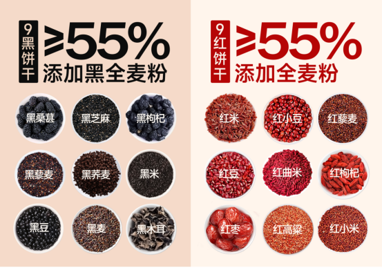 9黑添加了9种黑色谷物!9红添加了9种红色谷物! 我们来看看这个 【无糖高纤9黑藜麦谷物饼干】】❗❗❗❗ 配料也是明明白白有讲究的! 9黑粉里面有:黑豆、黑芝麻、黑麦、黑桑葚、黑枸杞、黑藜麦、黑米、黑荞麦、黑木耳 黑豆:预防贫血、益气补肾、保护血管 黑芝麻:滋养肝肾、益血乌发、保护血管 黑麦:滋养身体、健脑益智、减肥瘦身 黑桑葚:滋阴补血、生津润燥 黑枸杞:保护肝脏、明目 黑荞麦:抗菌、降血脂 黑米:补肾黑发、预防贫血、补充营养 黑藜麦:调节内分泌、降糖、保护心血管 黑木耳:补气血、减肥、改善便秘