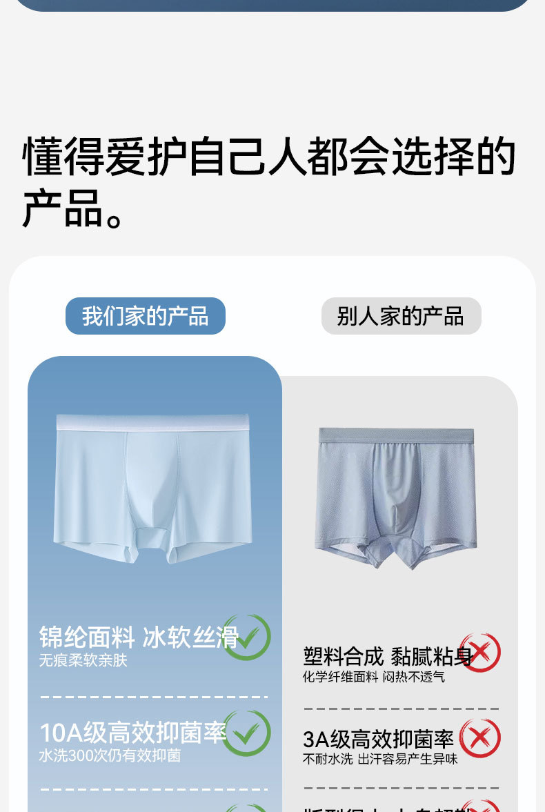【越轻薄 越凉快】男士夏季冰丝无痕内裤 超薄凉爽 一触即凉 10A级抑菌 7色可选随心搭配 3条装