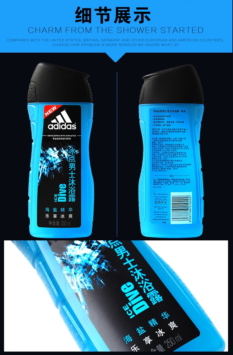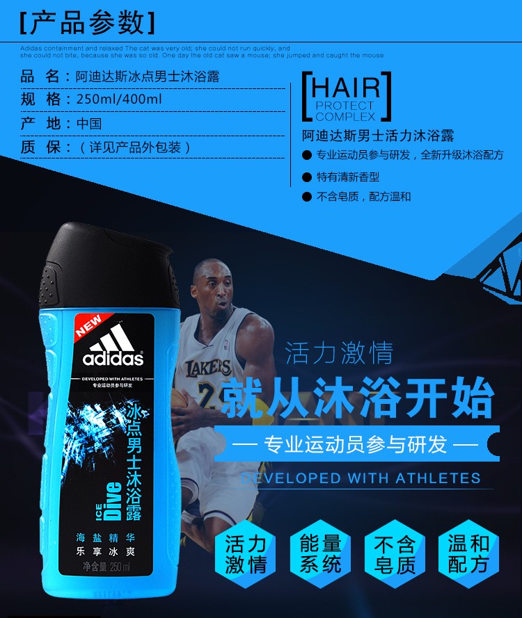 阿迪达斯男士活力沐浴露-冰点 250ml(1906001)