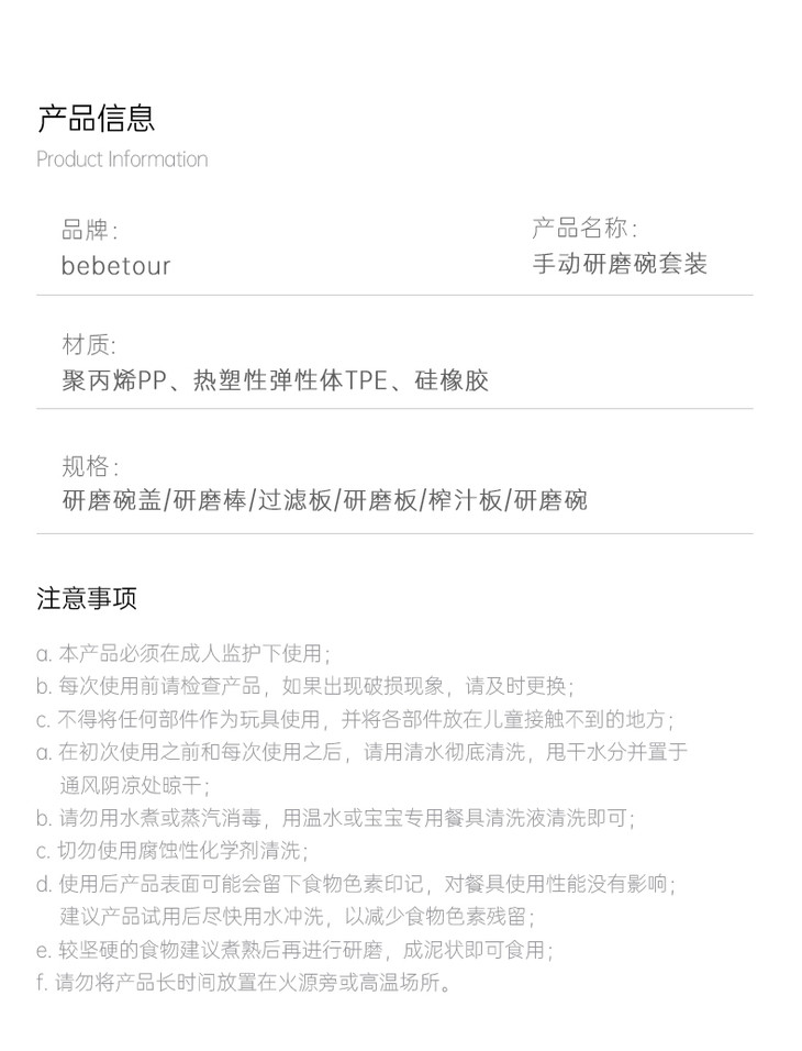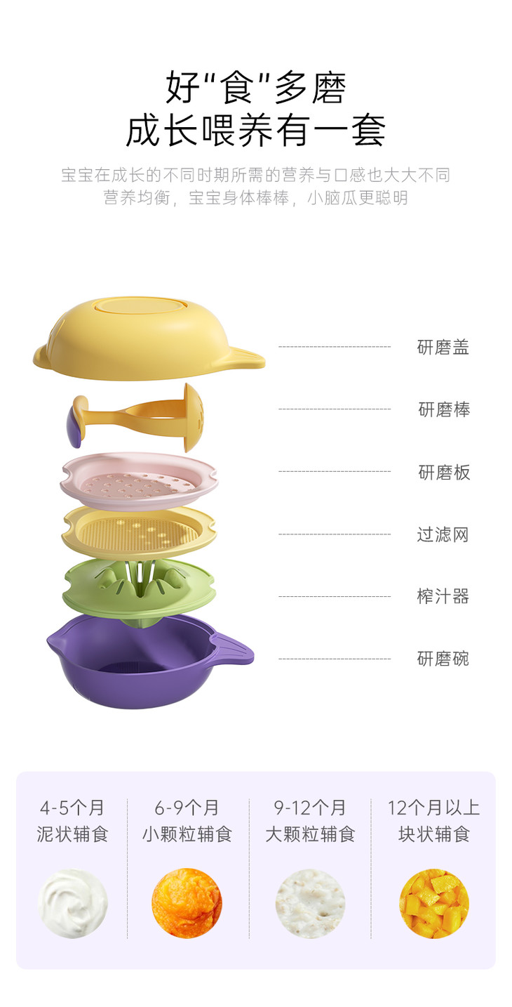 bebetour婴儿研磨碗辅食工具全套宝宝儿童餐具专用辅食碗研磨器