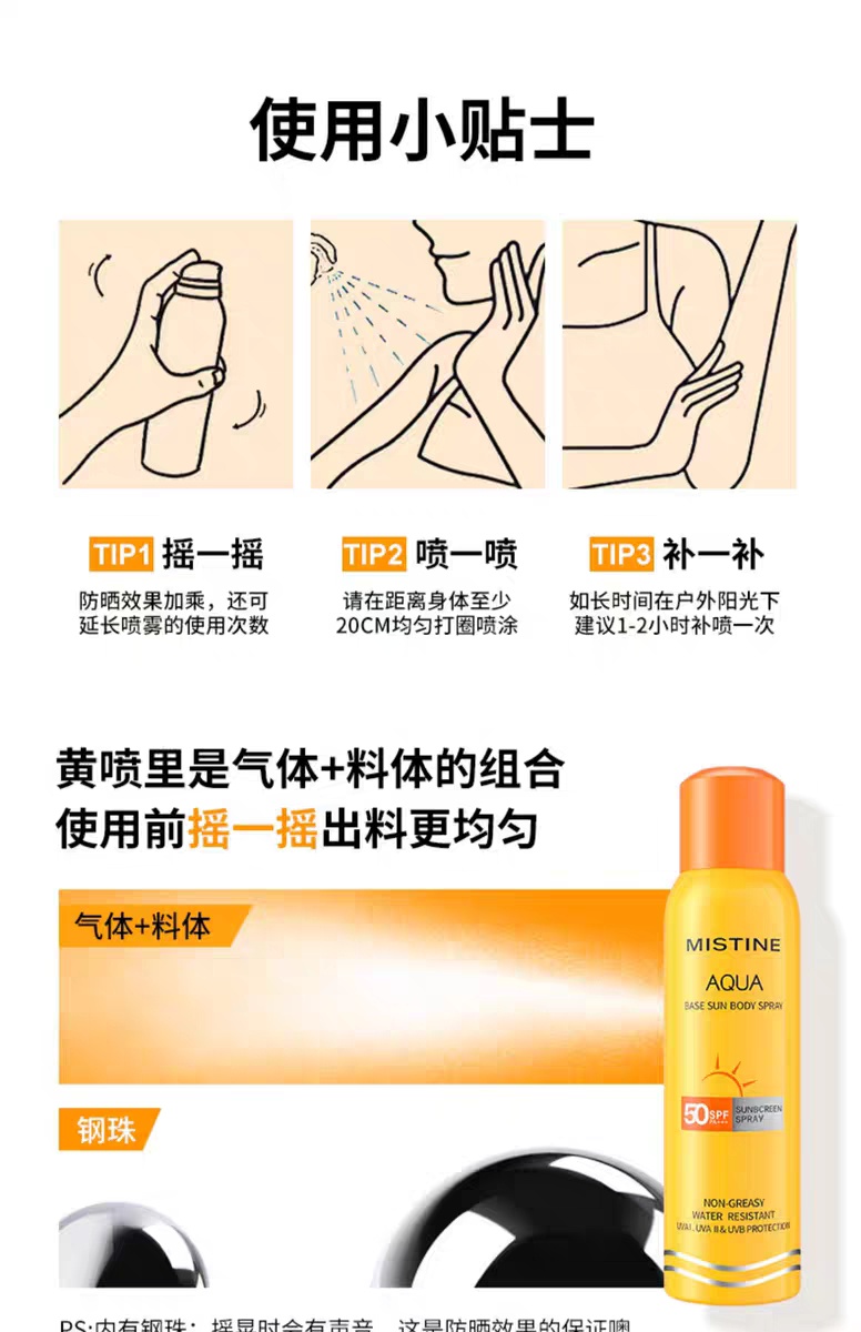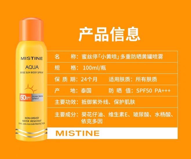 [小滋心选]【活动价¥79.9/3瓶 | 到手300ml】Mistine防晒喷雾 100ml 军训必备