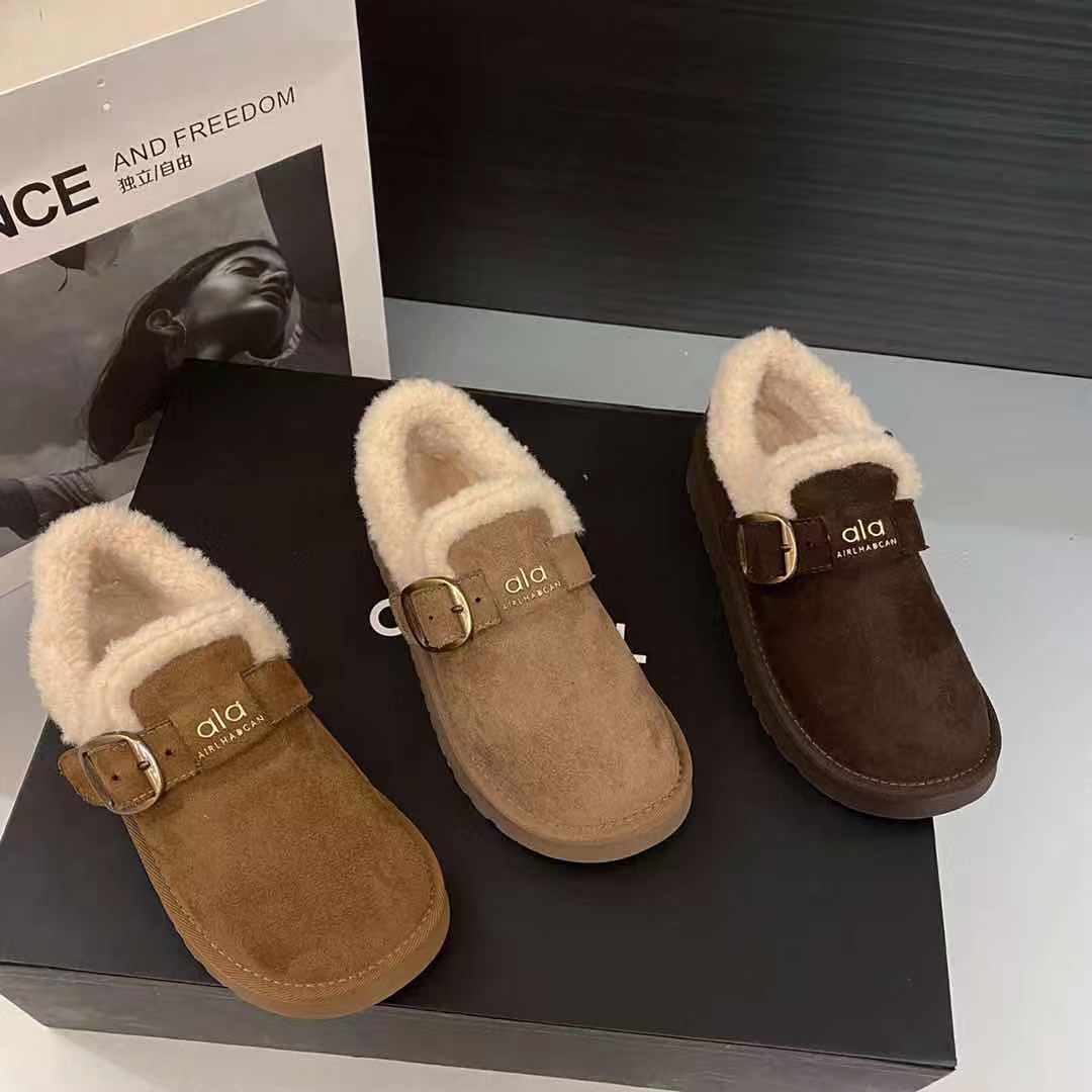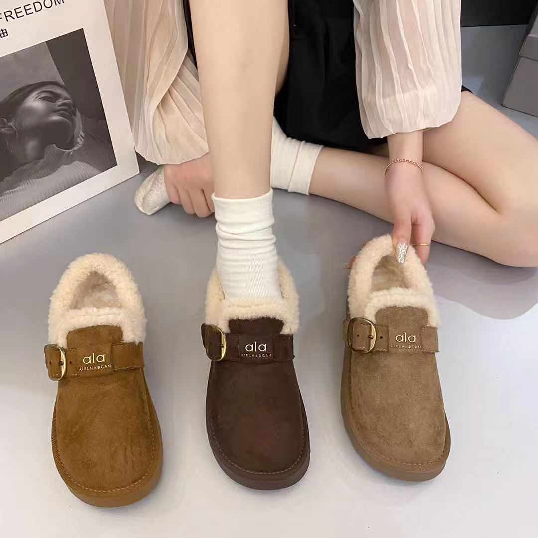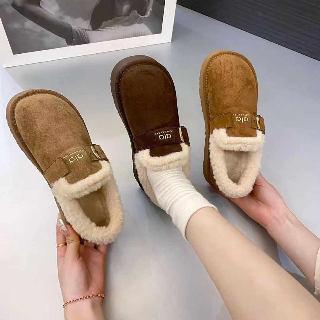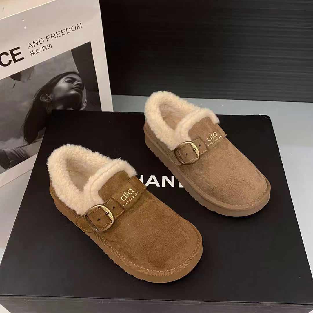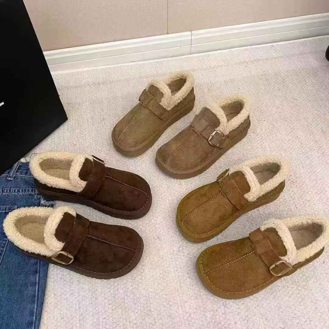 【HF】无忧购冬季复古厚底勃肯鞋烫金字母装饰加绒鞋K021(截单后3-5天发货)