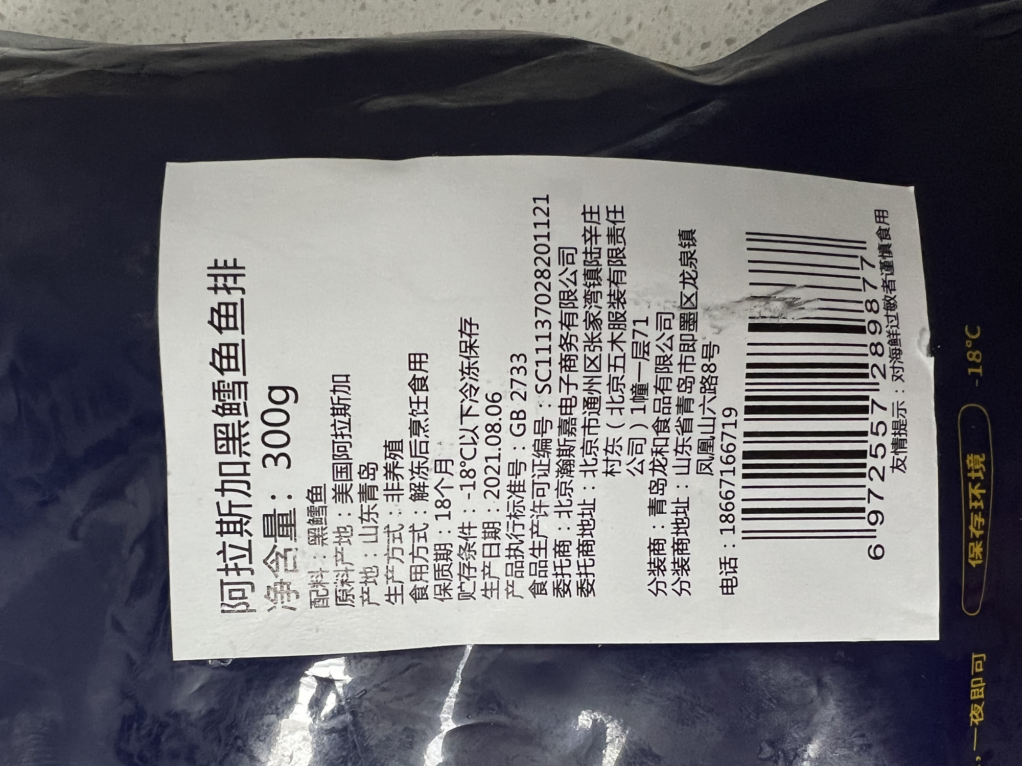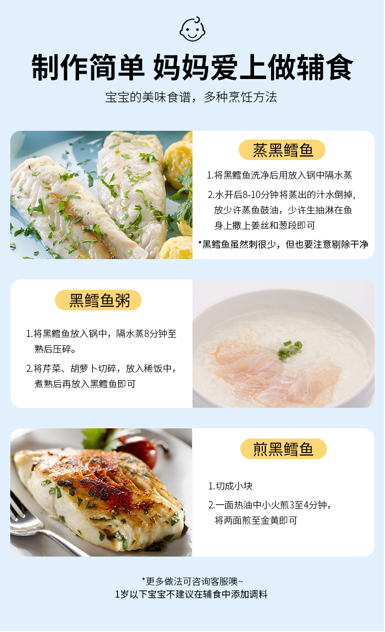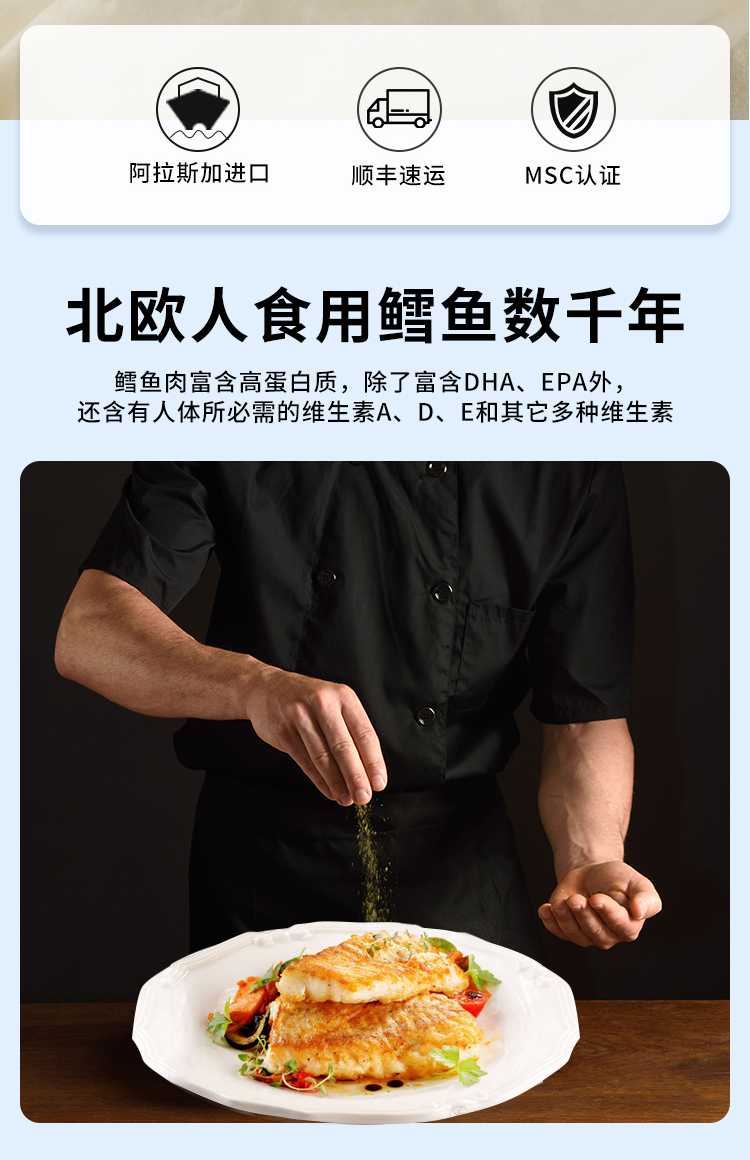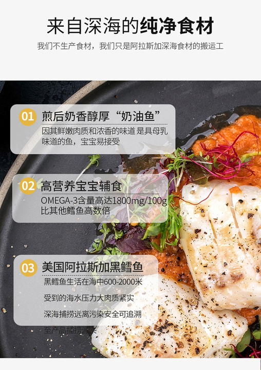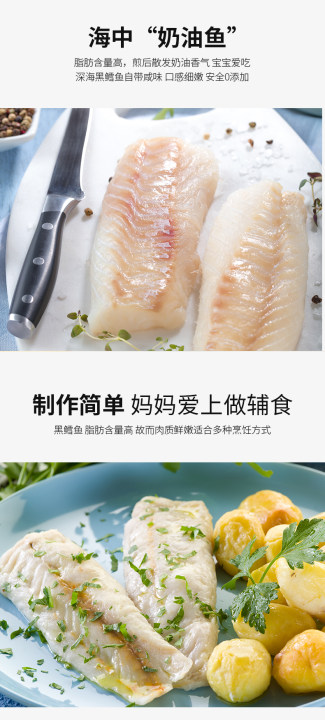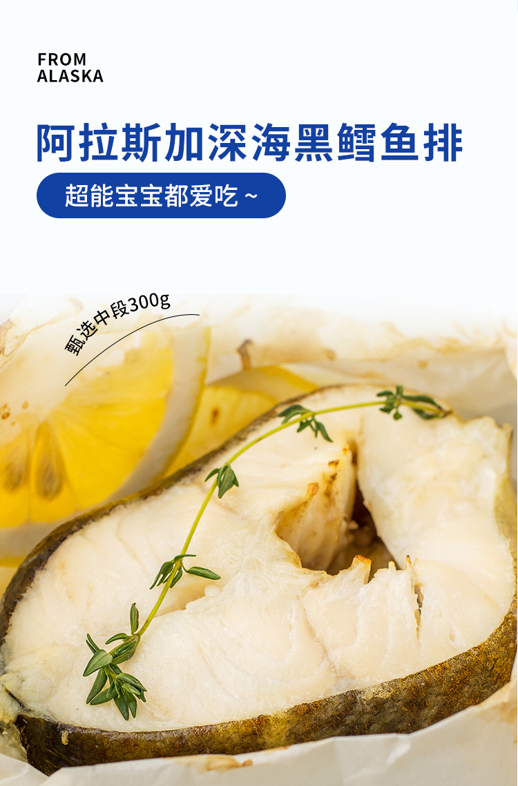 【大黄鲜森】阿拉斯加黑鳕鱼排DHA高营养宝宝辅食300g*2包