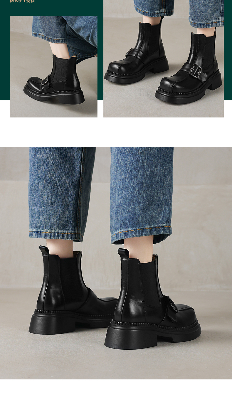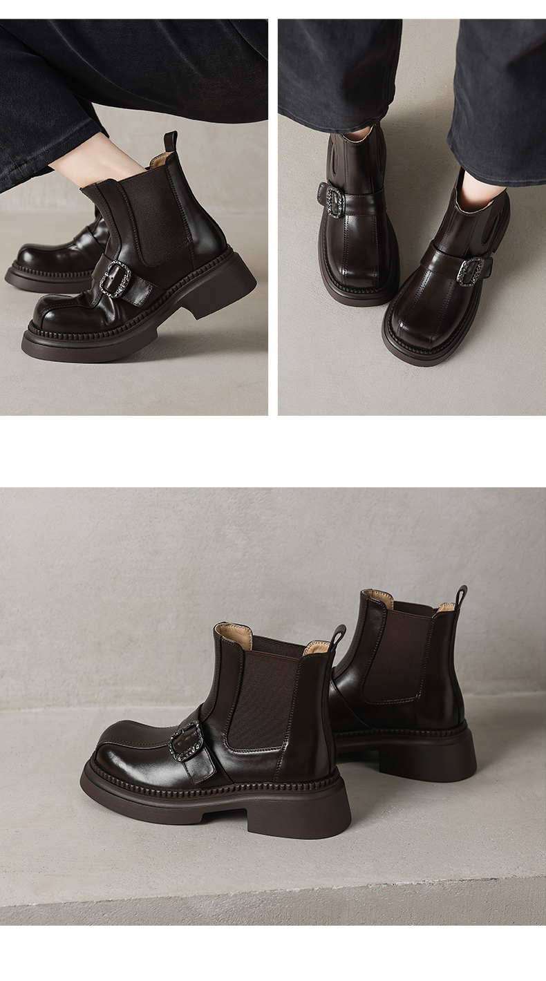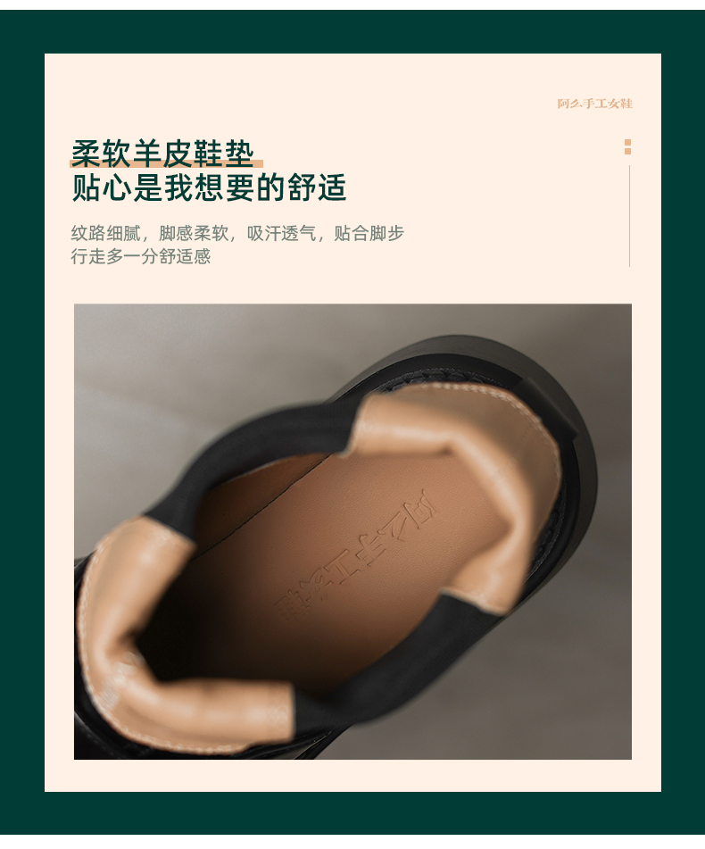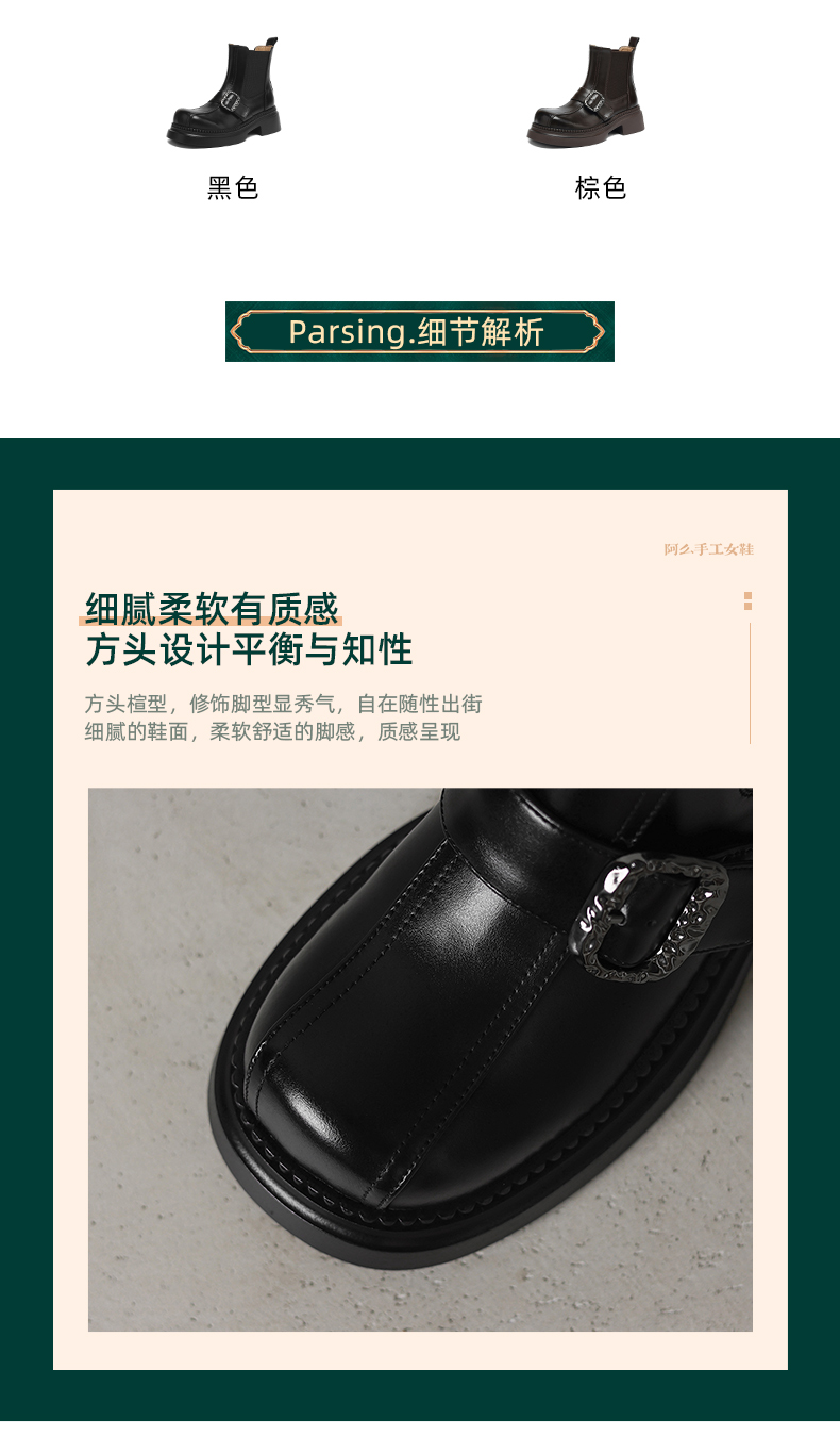 阿么手工女鞋复古烟筒靴女真皮秋冬新款厚底短筒皮带扣短靴5.5CM