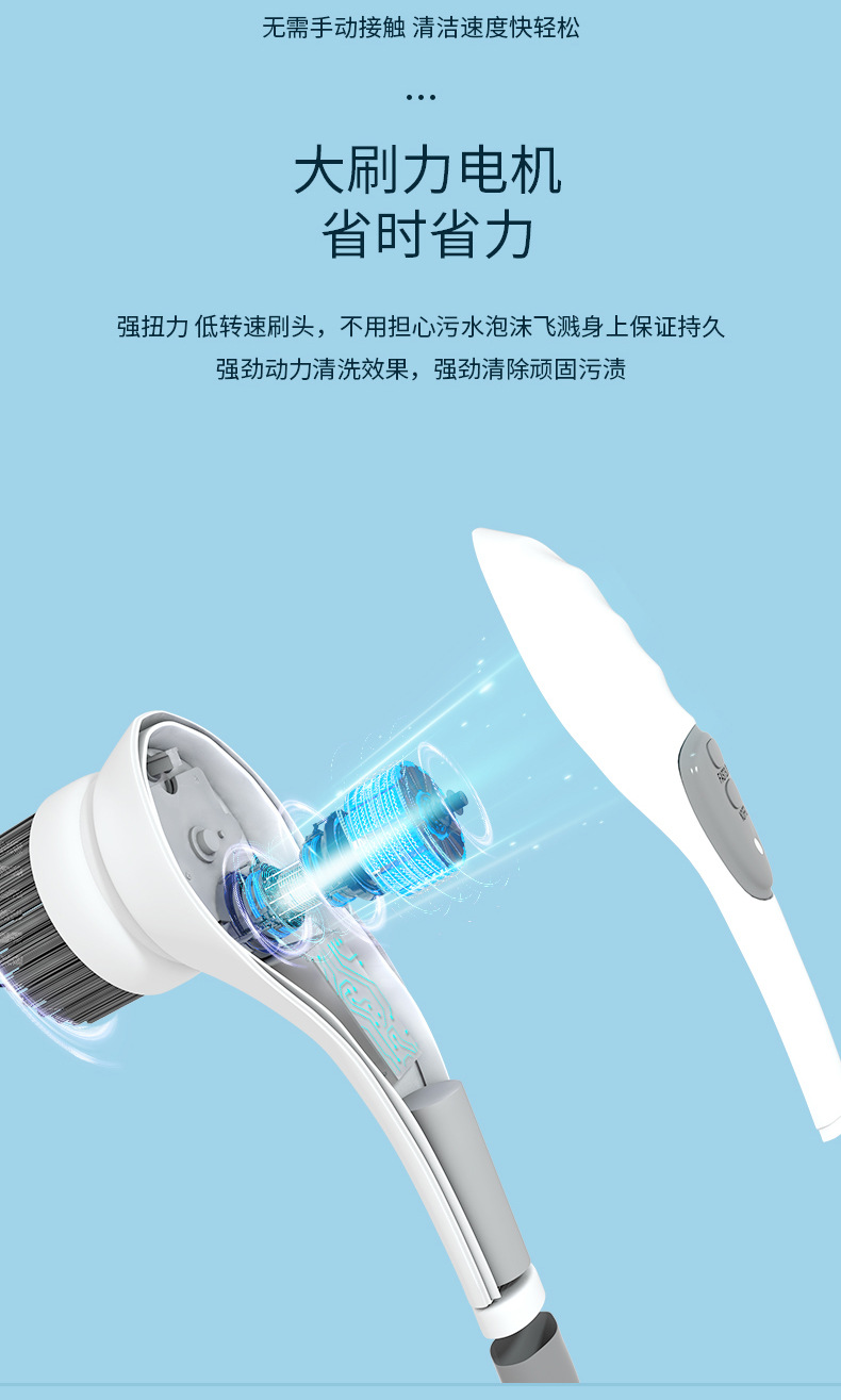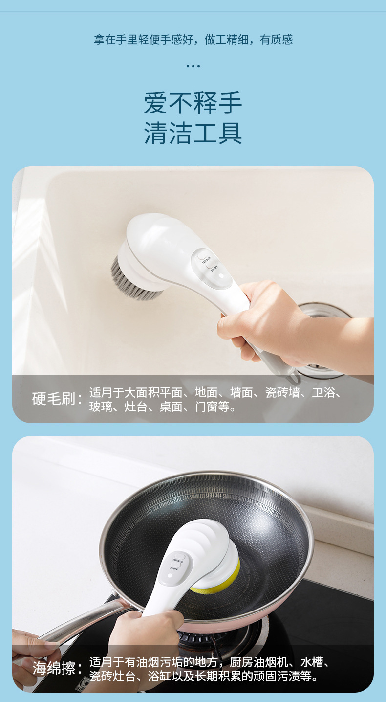 【清洁好帮手,一机多用】多功能厨房电动清洁刷 长柄无线款 刷锅刷碗 刷浴室刷瓷砖刷玻璃 两挡调速 省心省时更省力!