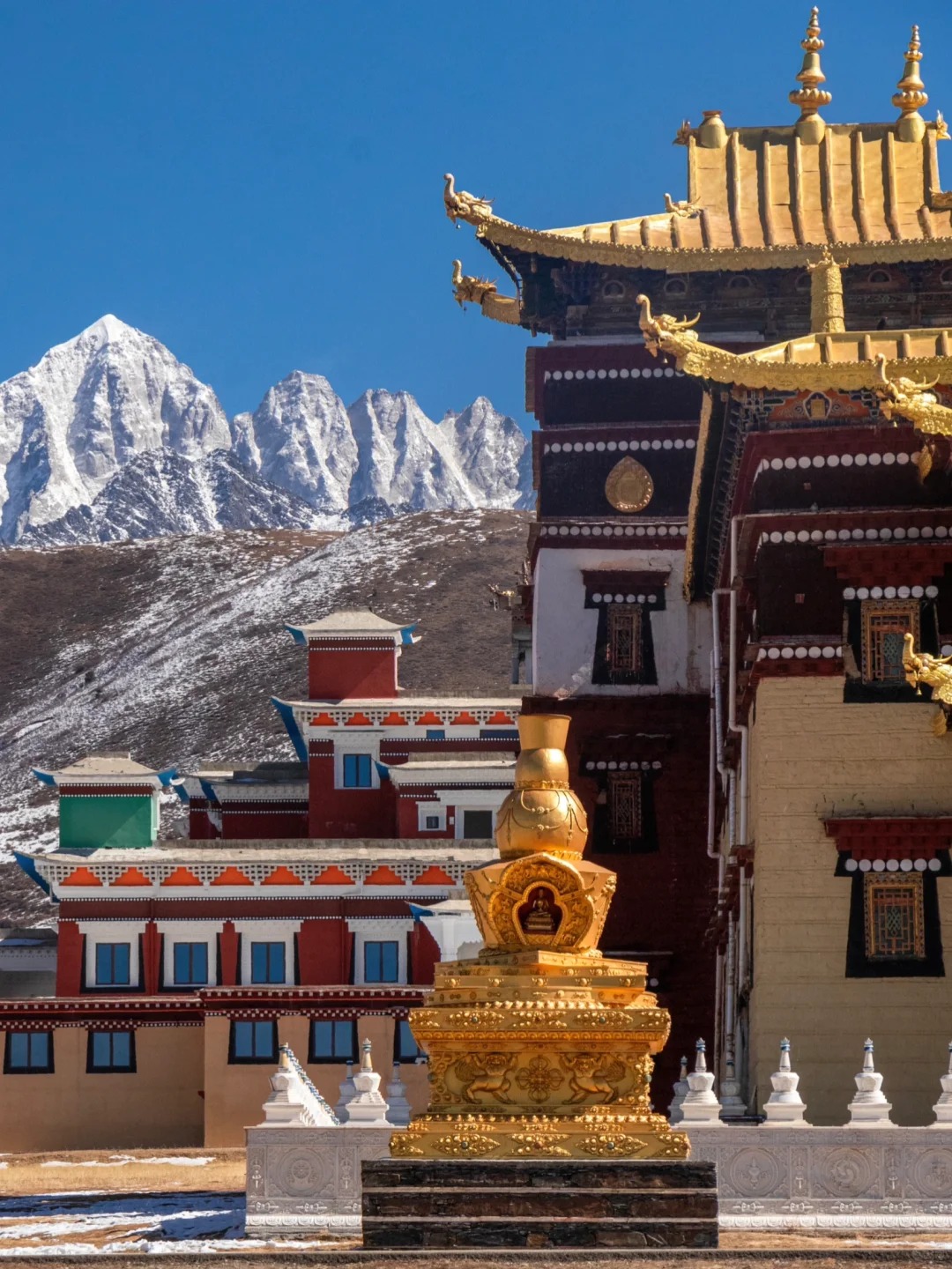 藏着 “草原铺地、雪山为背、寺庙为魂” 的极致组合