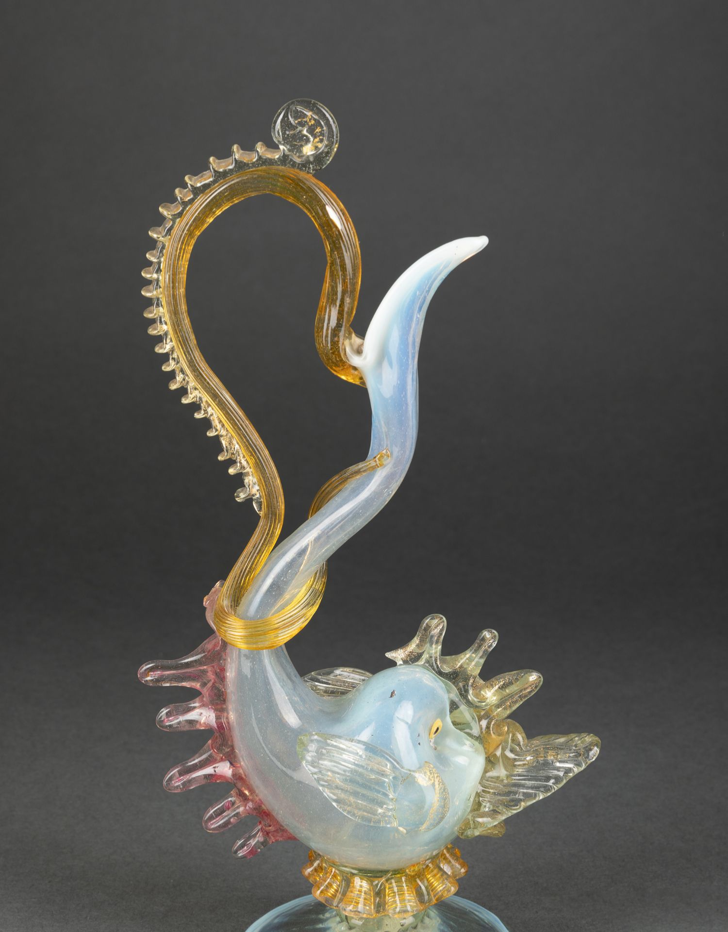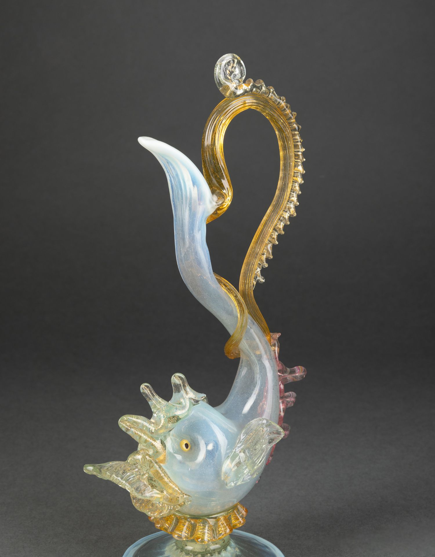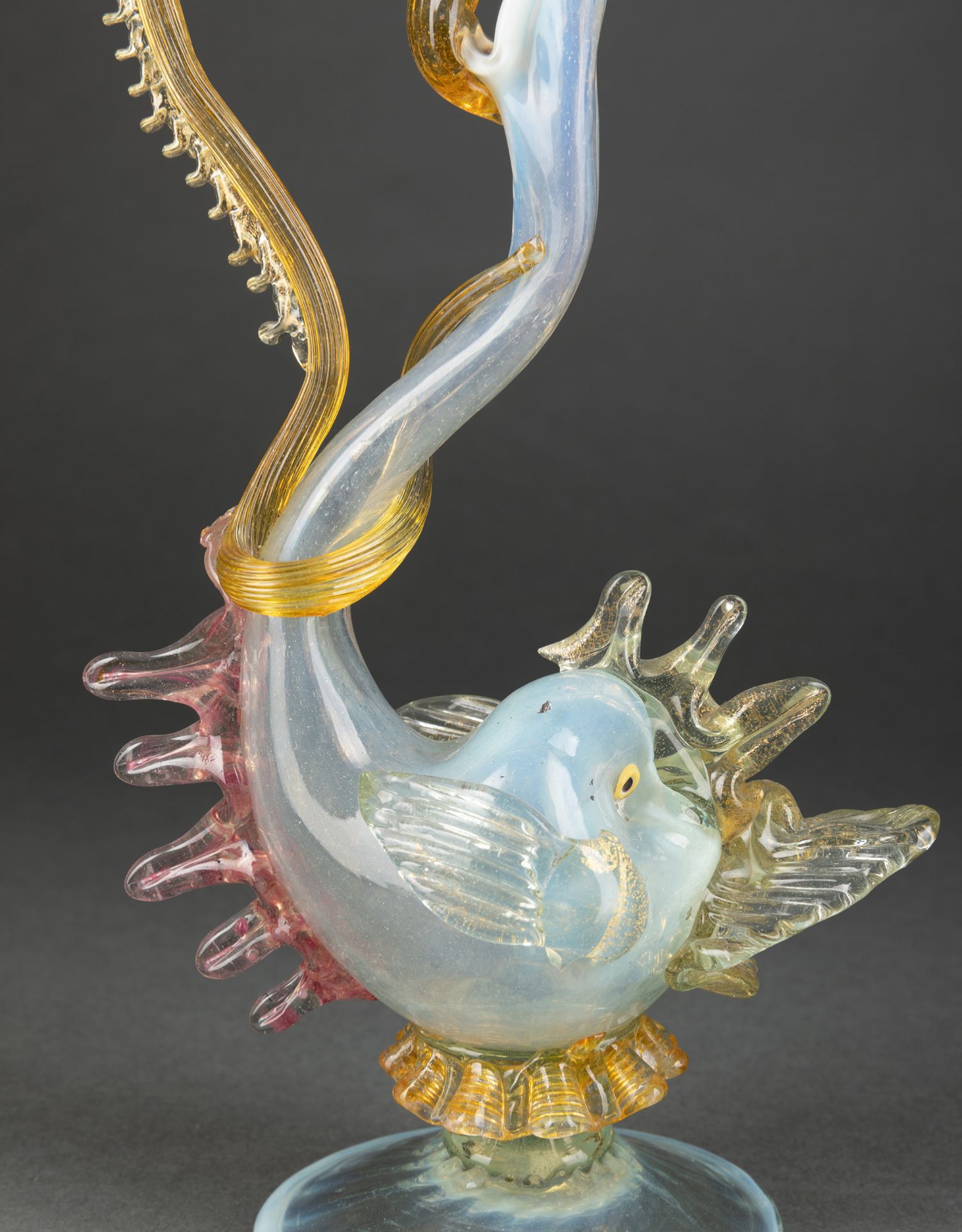 独角鹿西洋古董意大利威尼斯Murano欧泊玻璃海豚跃金波主题摆件