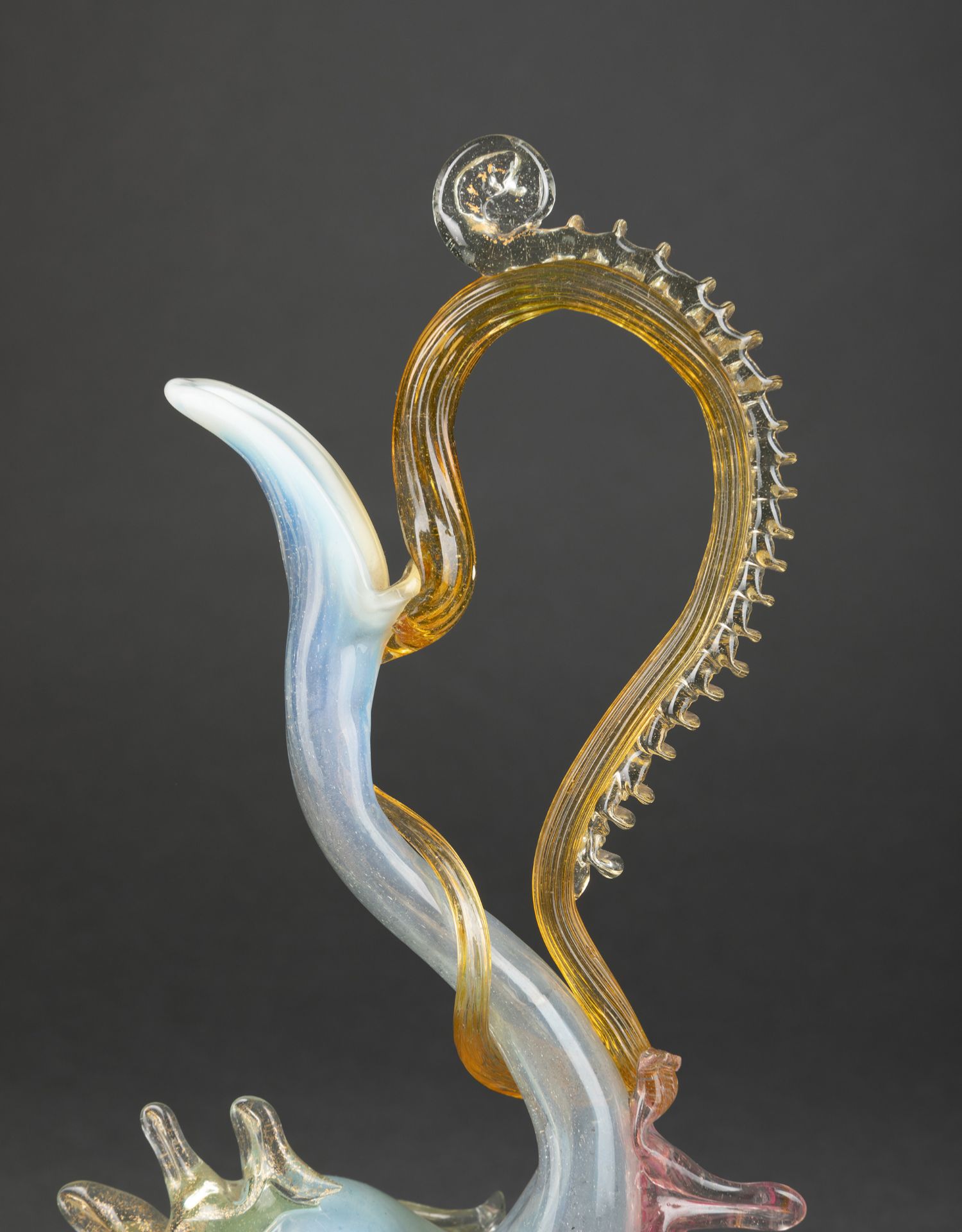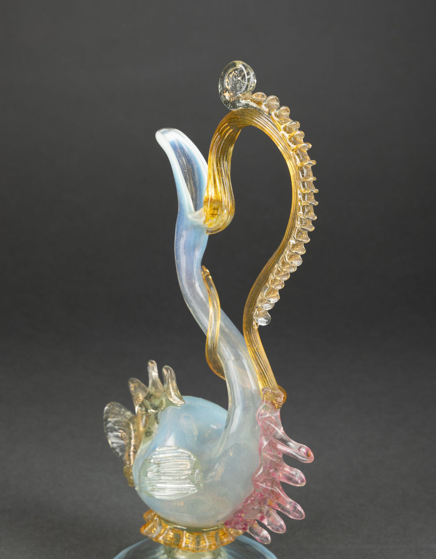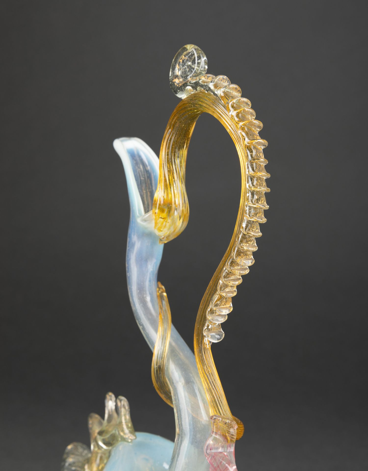 独角鹿西洋古董意大利威尼斯Murano欧泊玻璃海豚跃金波主题摆件