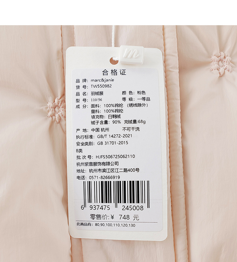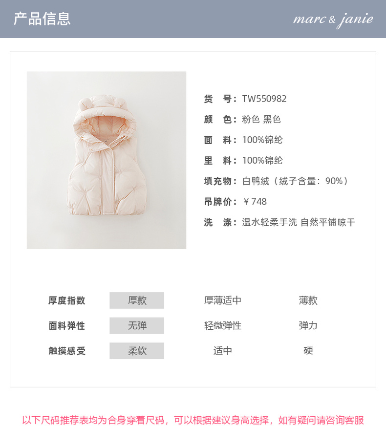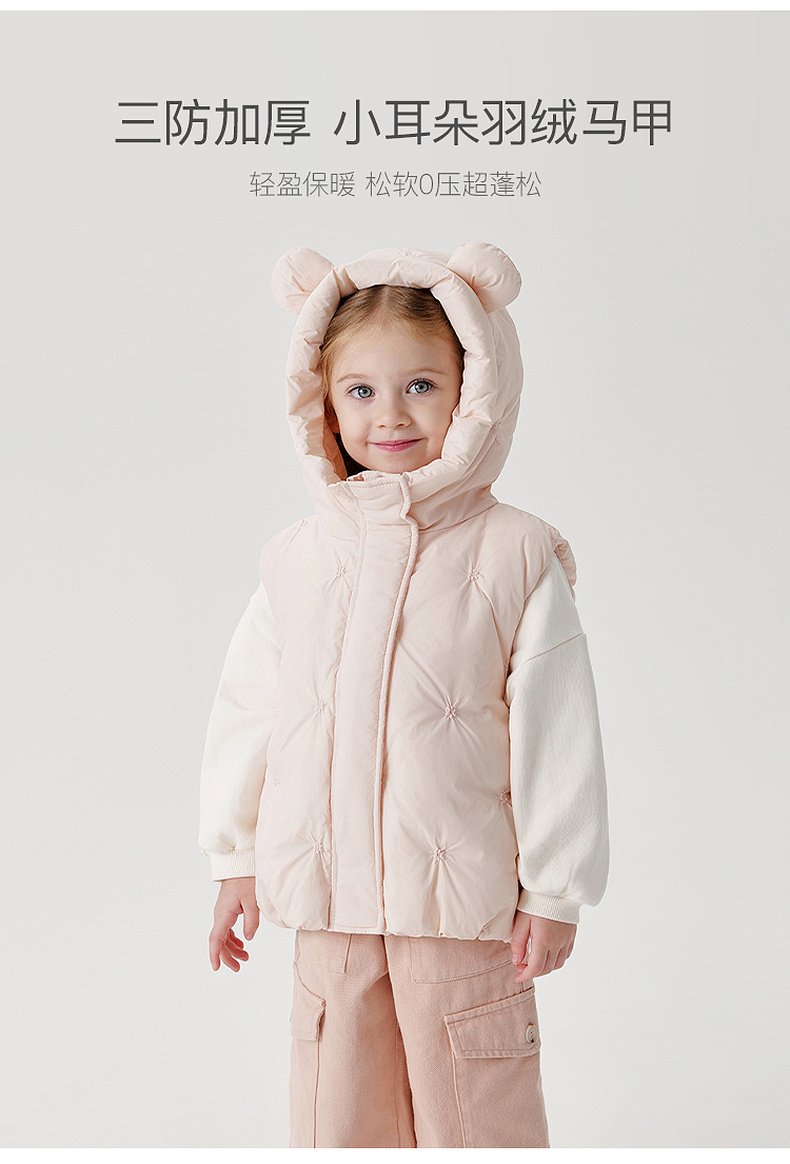 【三防】马克珍妮女童可爱熊耳朵加厚羽绒马甲2025年冬装新款550982