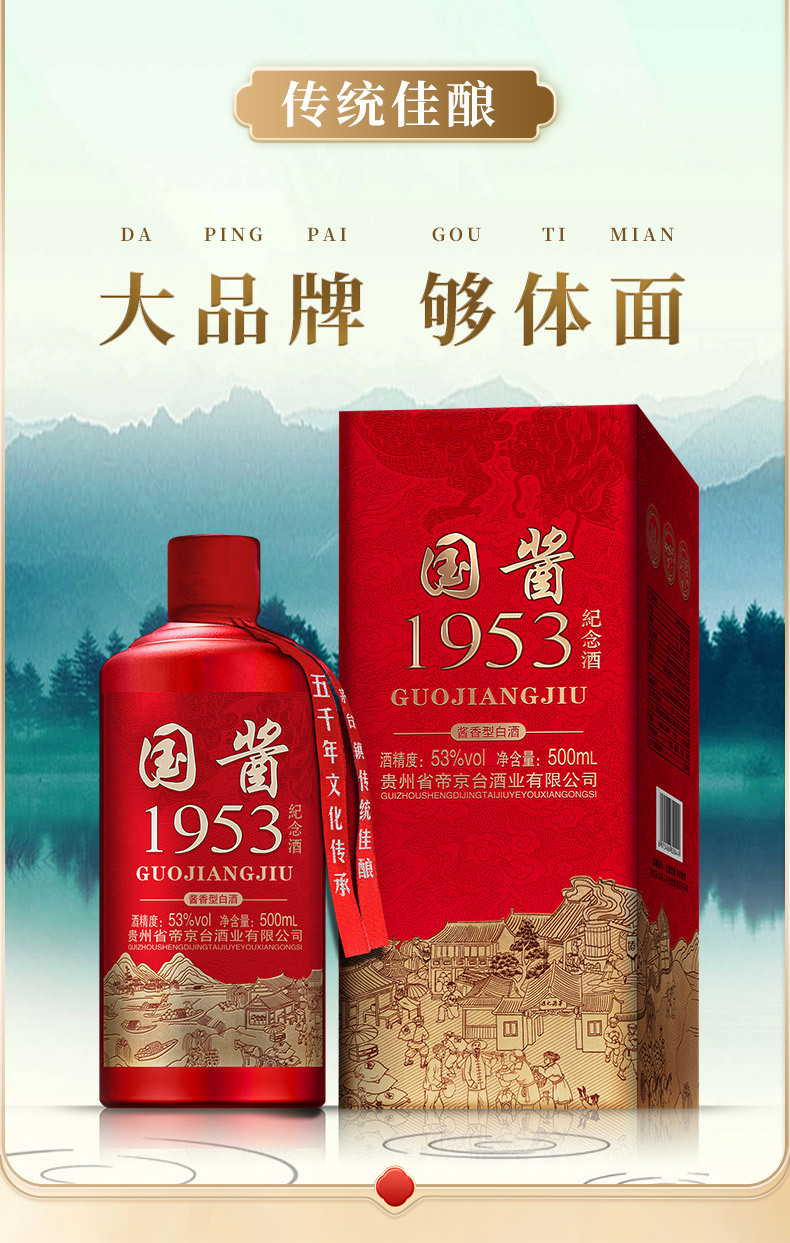 【古法传承❗️贵州国酱1953纪念酒】传统古法,手工纯粮酿造,恒温窑藏,醇厚悠长!酱香型白酒坤沙老酒纯粮高粱整箱